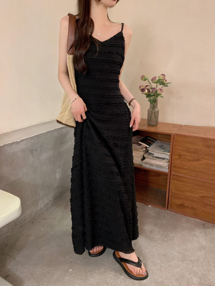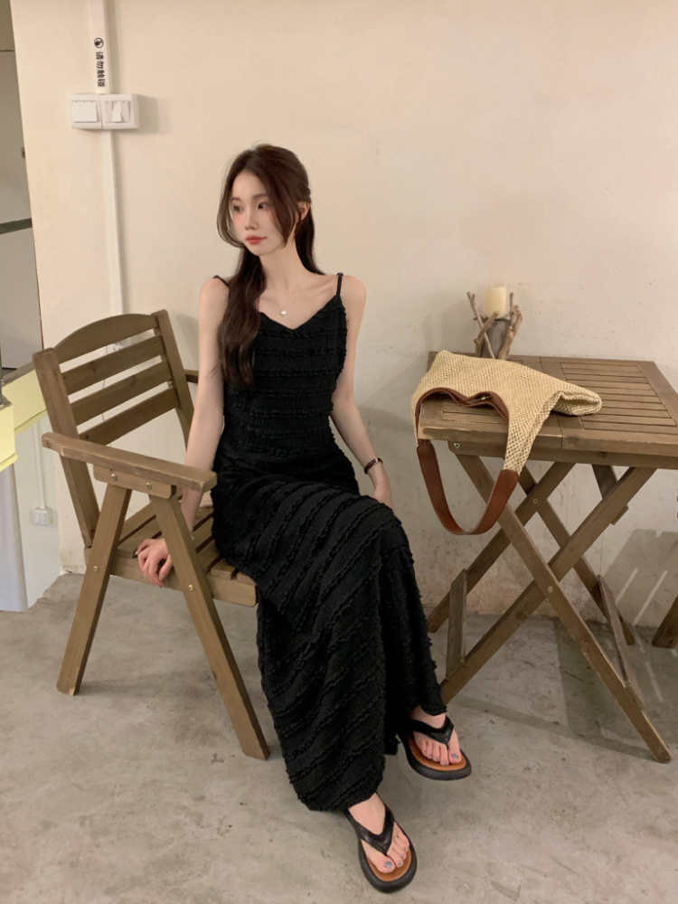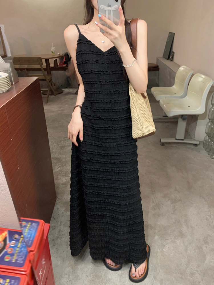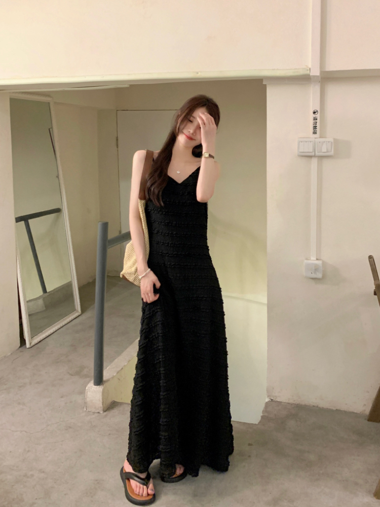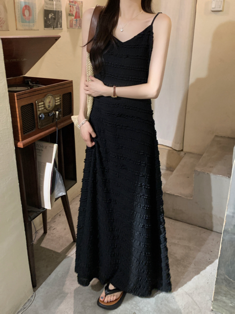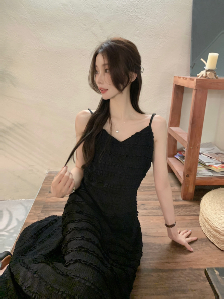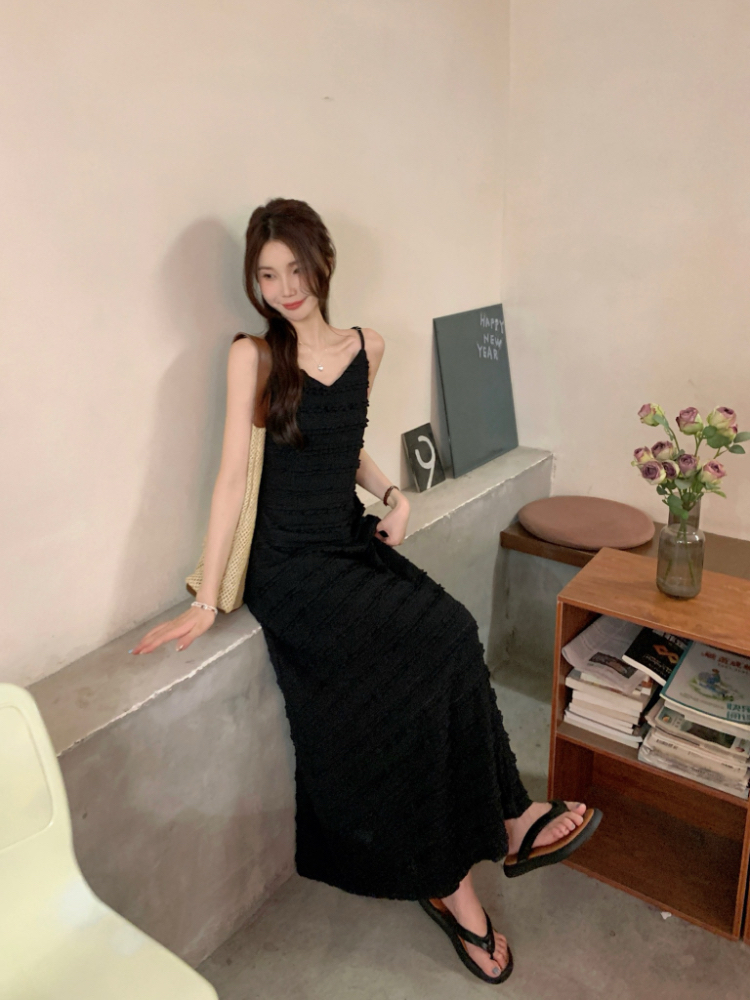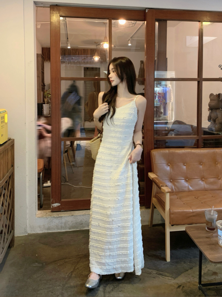 부드러운 프랑스 스타일 우아한 V 넥 레이스 원피스 여성 봄 2025 새로운 간단한 타이트 허리 스트랩 A 라인 롱 원피스
