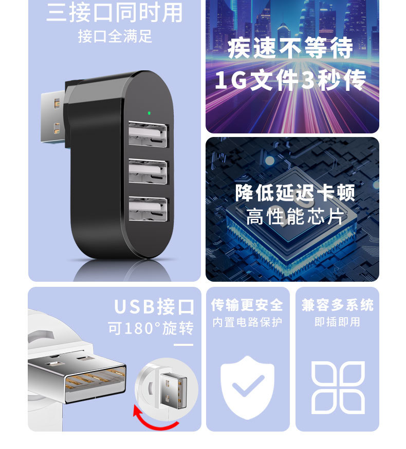 180 도 3 인터페이스 USB 허브 도킹 스테이션 컨버터 컴퓨터 무선 1 드래그 3 미니 휴대용 익스텐더스토어 가기