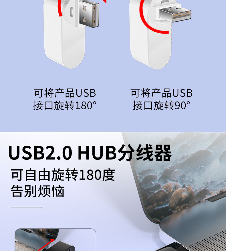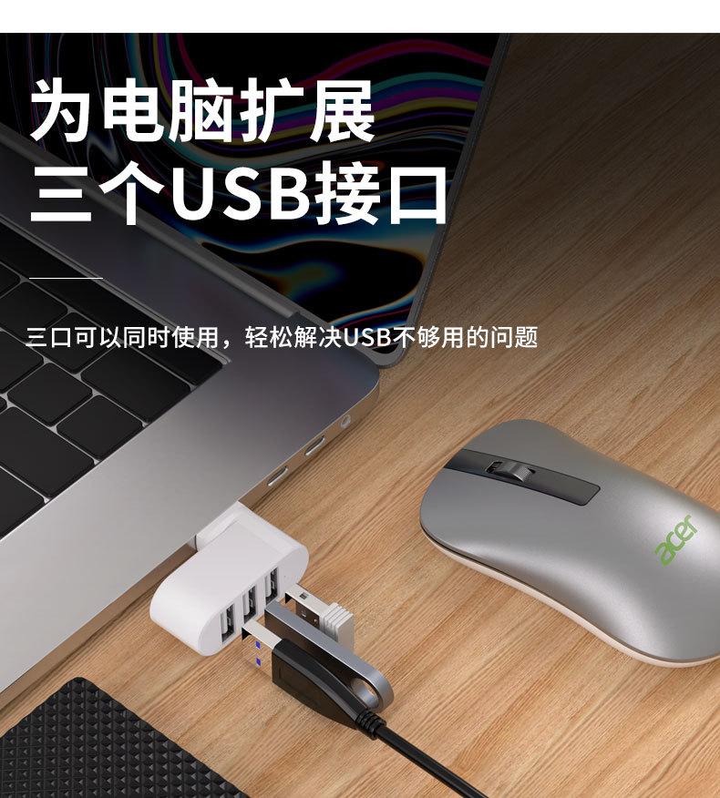 180 도 3 인터페이스 USB 허브 도킹 스테이션 컨버터 컴퓨터 무선 1 드래그 3 미니 휴대용 익스텐더