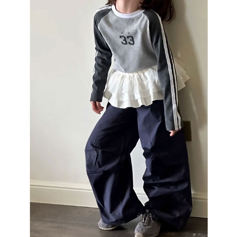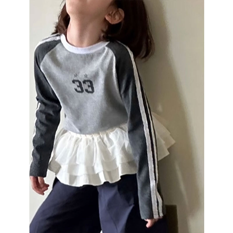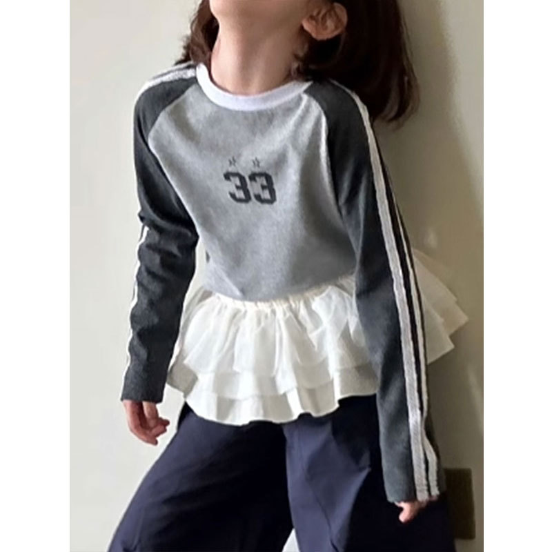 소녀 긴팔 티셔츠 봄 2025 새로운 아동베이스 셔츠 아기의 최고 소녀 라운드 넥 그레이 컬러 블록 옷 1스토어 가기