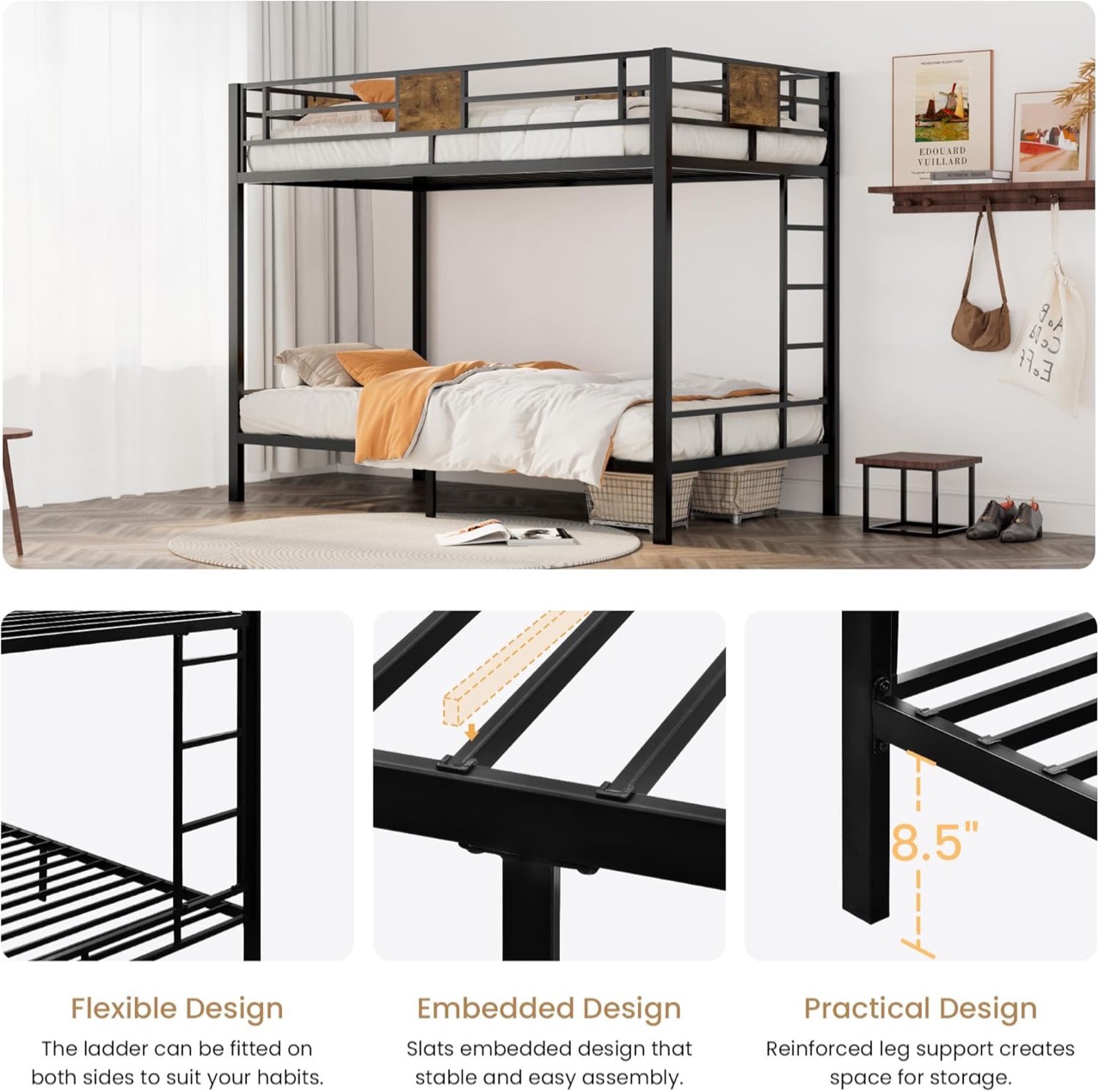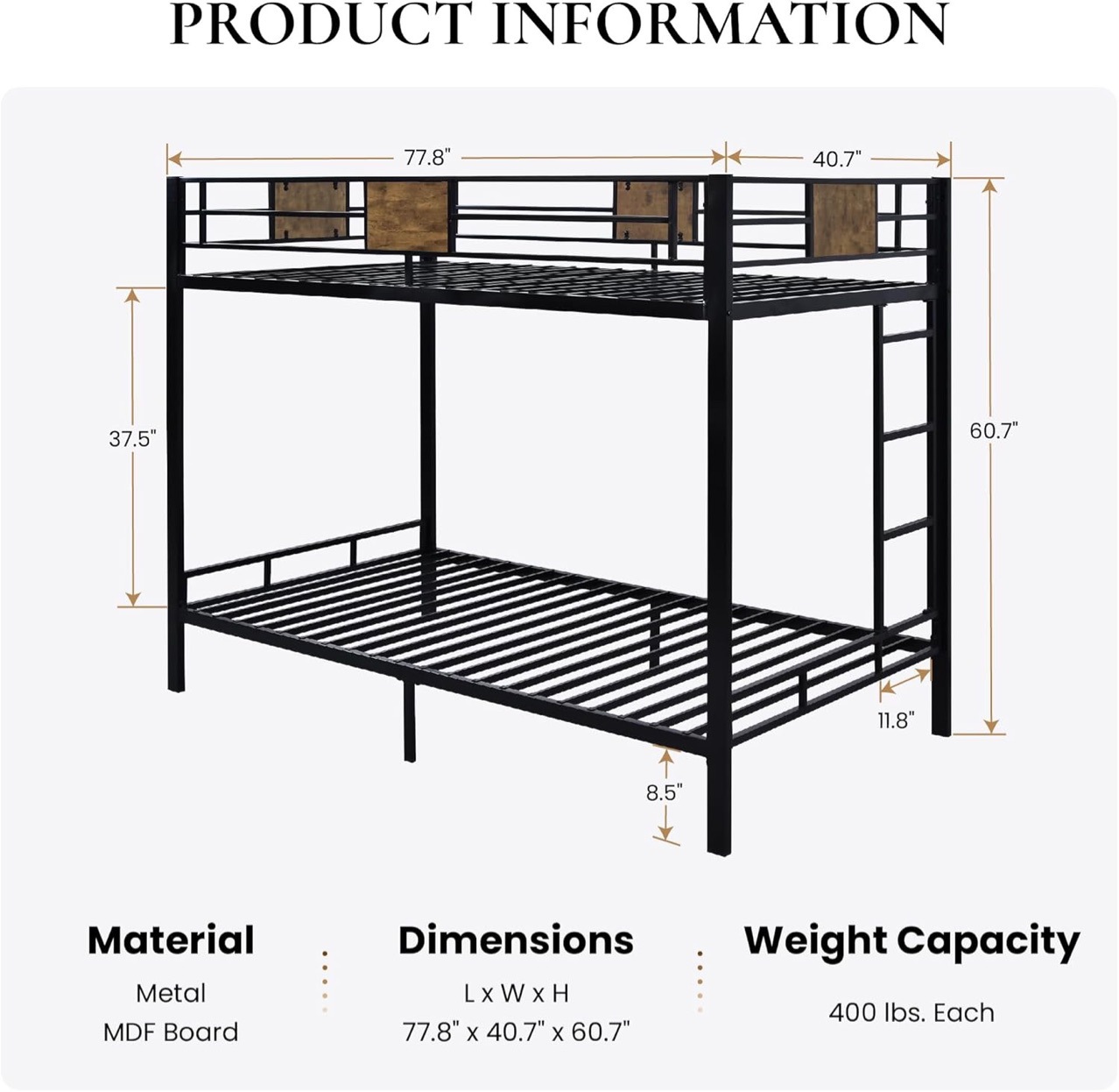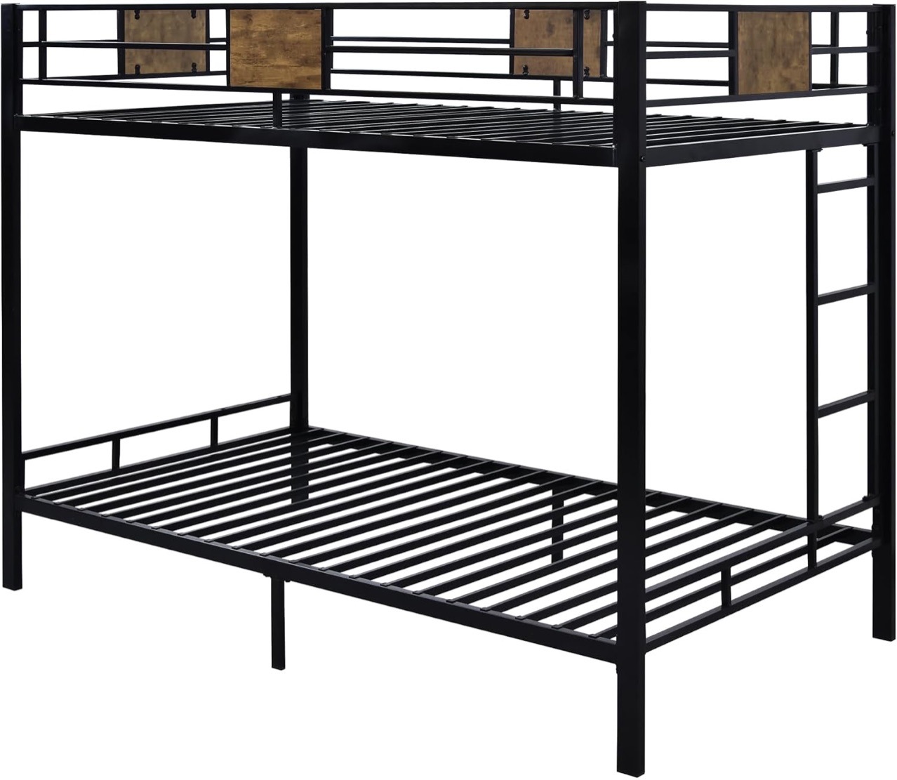 로프트 이층 침대 싱글 침대 크기 사다리와 난간, 컨트리 스타일 디자인, 금속 스트립 지원,