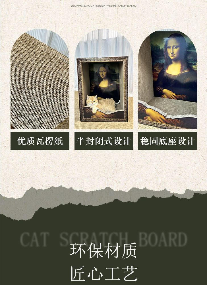 모나리자 고양이 둥지 사진 프레임 모나리자 고양이 스크래치 보드 빈티지 모나리자 고양이 둥지 그림 프레임 고양이 둥지