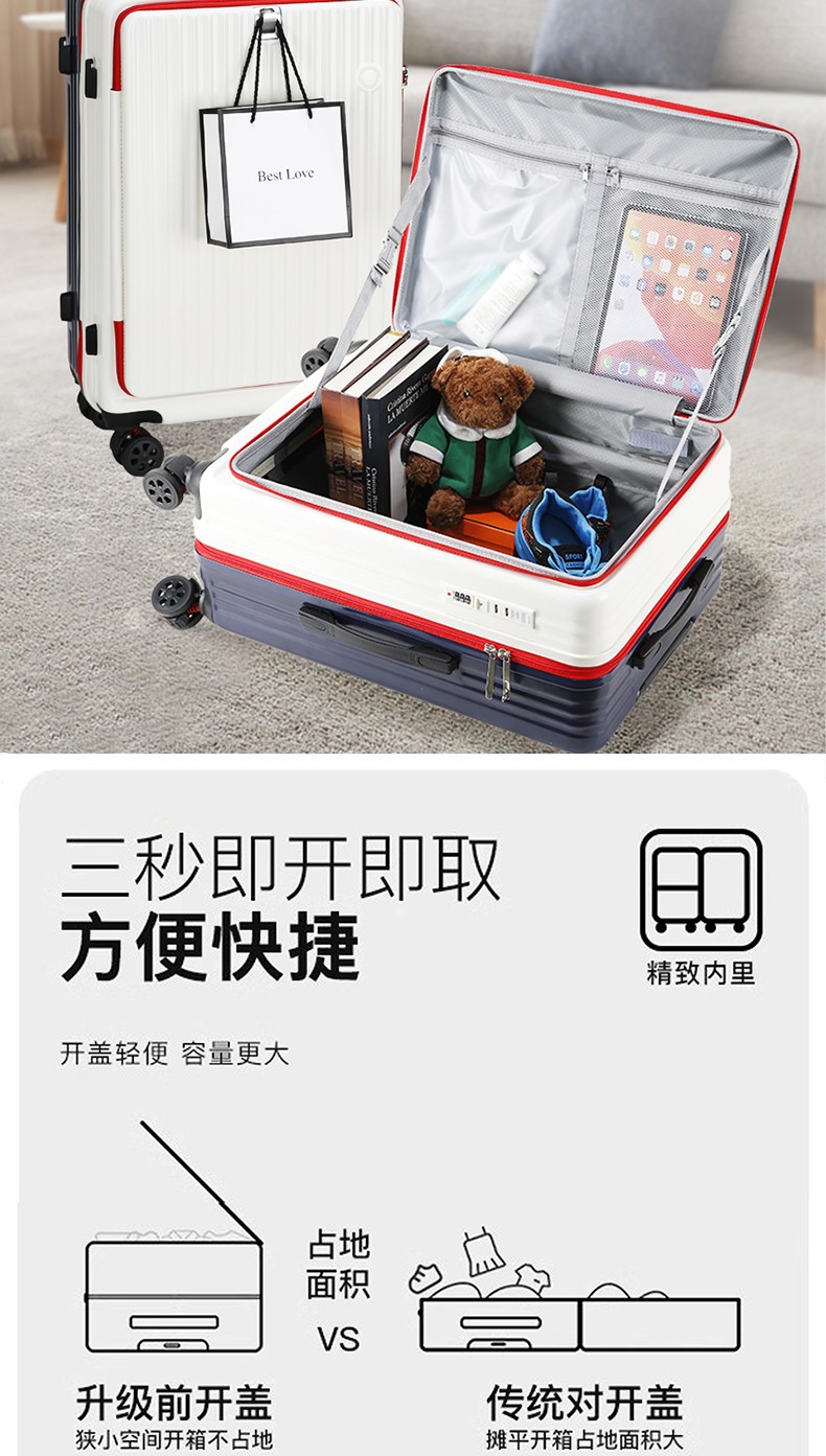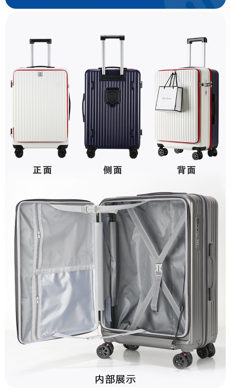 새로운 측면 개방 수하물 케이스 여성의 확장 가능한 다기능 트롤리 케이스 20 인치 가방 탑승 수하물 케이스 남성 국경스토어 가기