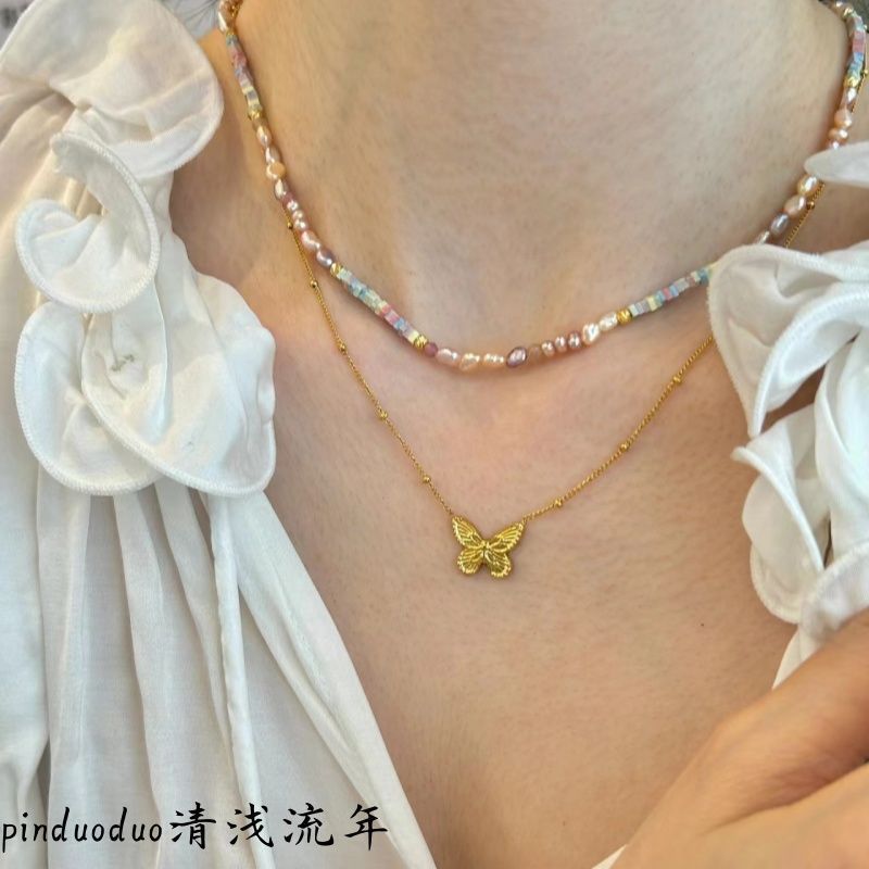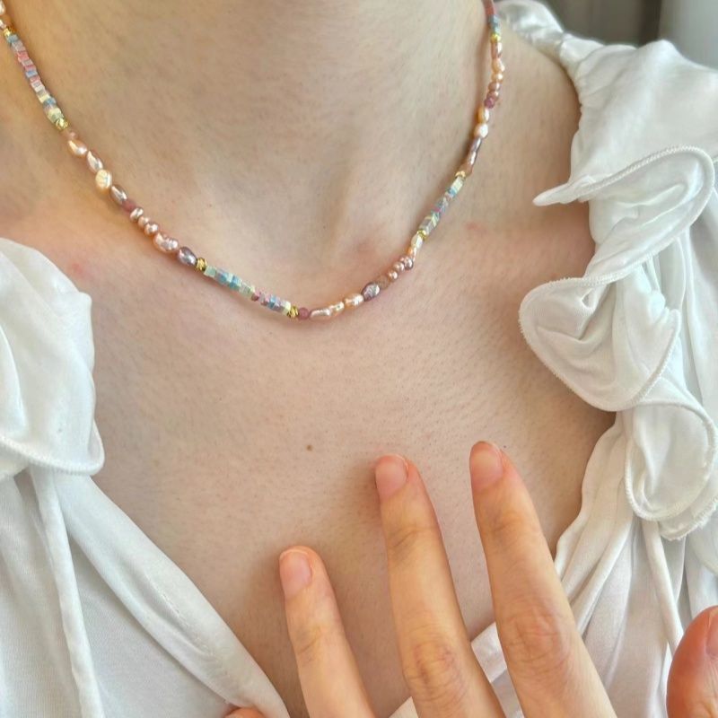 틈새 미니 불규칙한 바로크 핑크 보라색 구슬 목걸이 우아한 빛 럭셔리 올 매치 클래 버클 체인 새로운 스타일스토어 가기