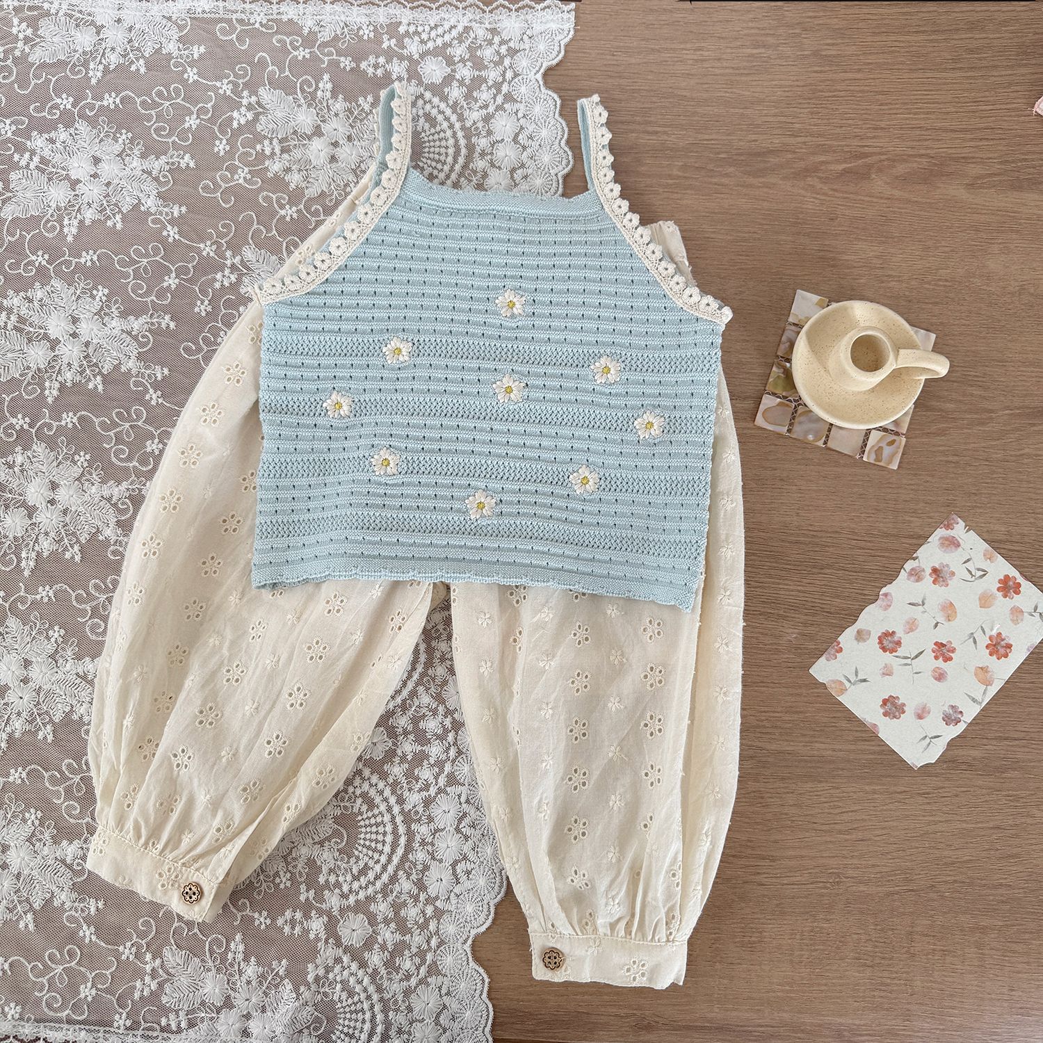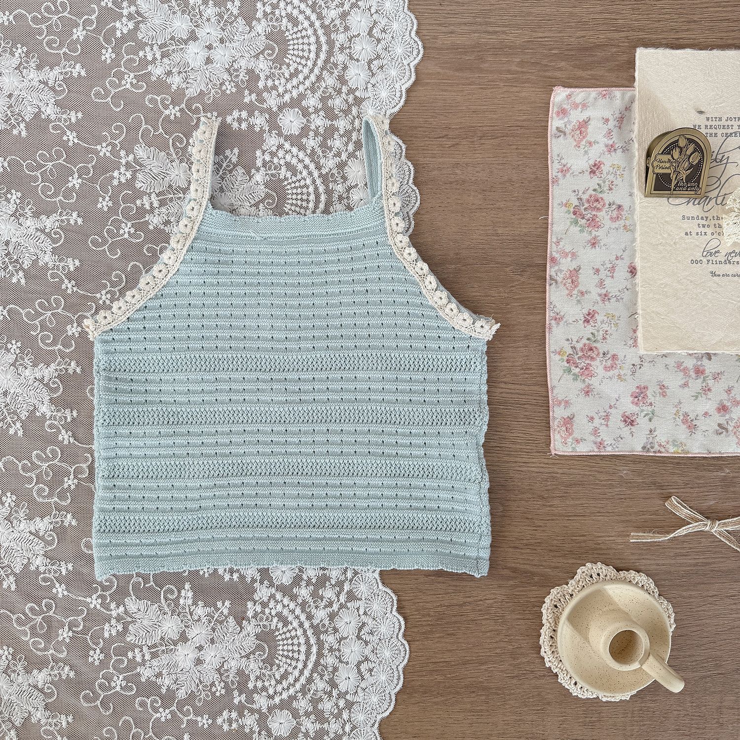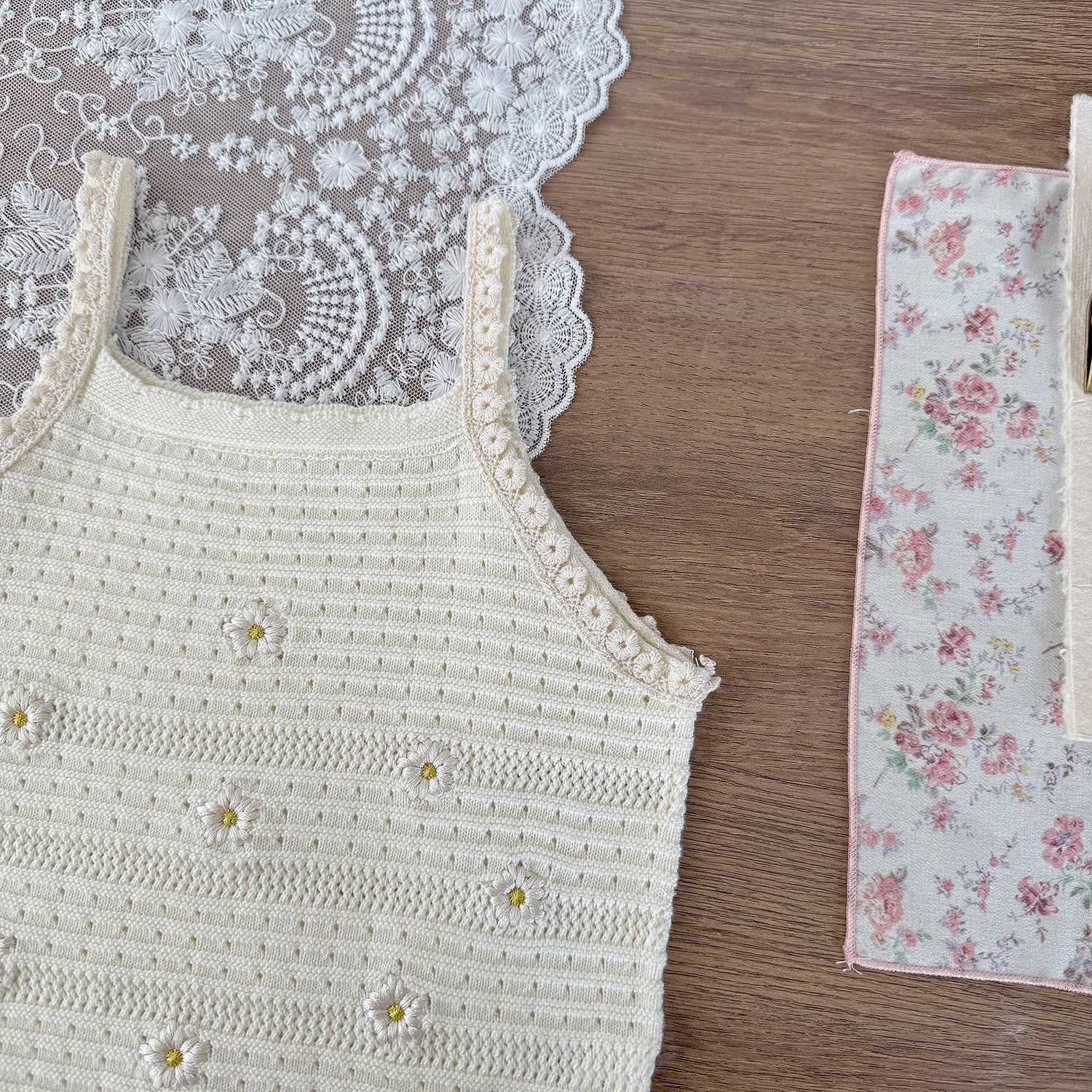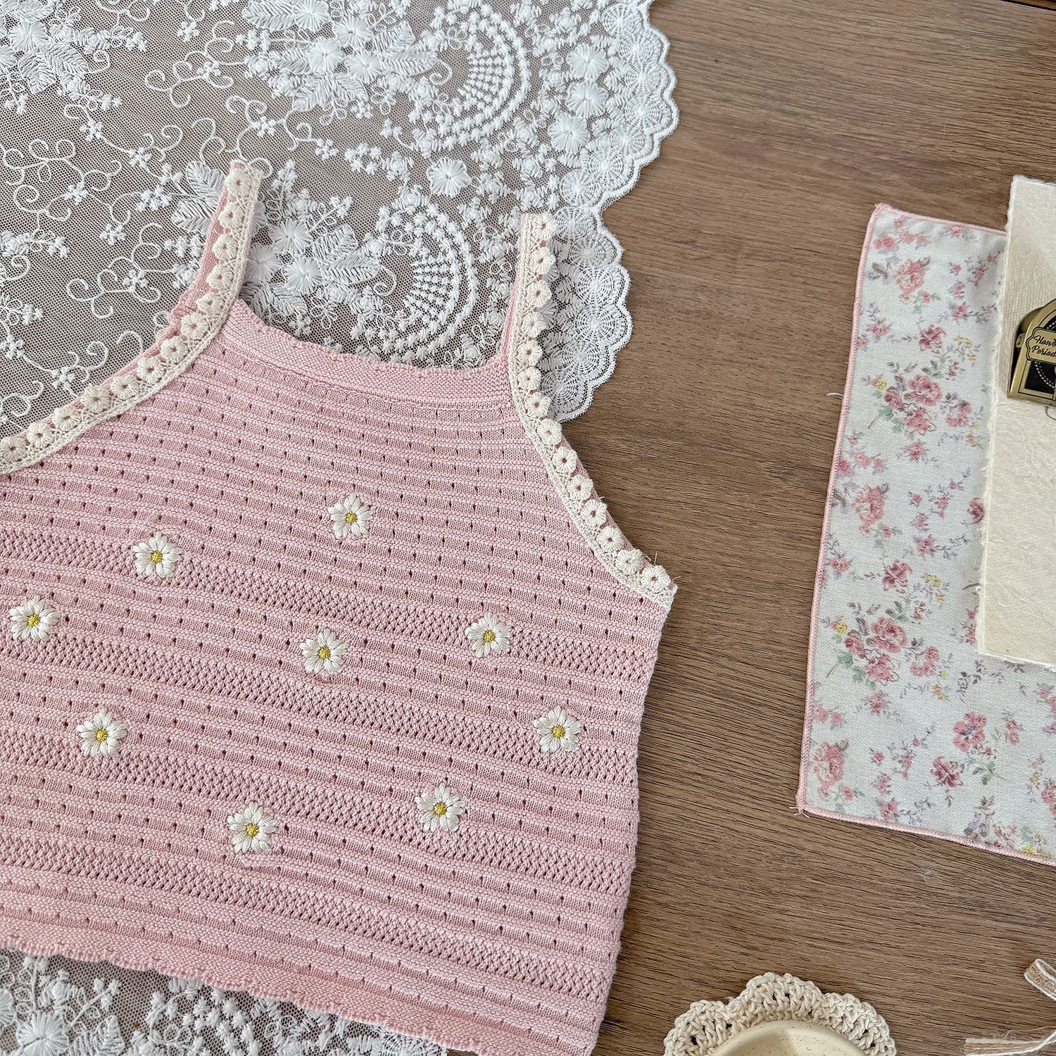 Cutemily 여름 소녀 니트 조끼 여성용 보물 하와이 할로우 귀여운 자수 꽃 얇은 카미솔스토어 가기