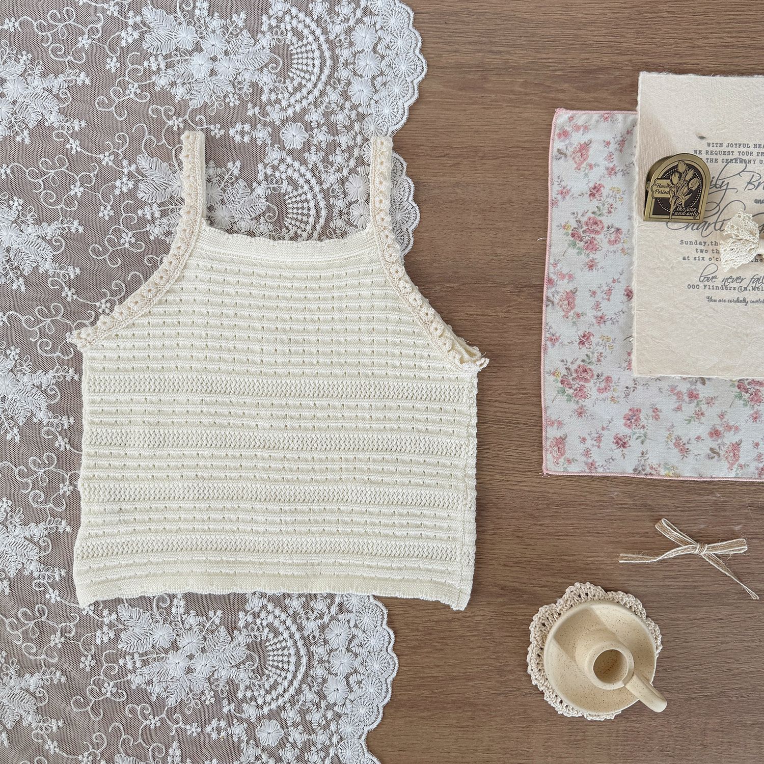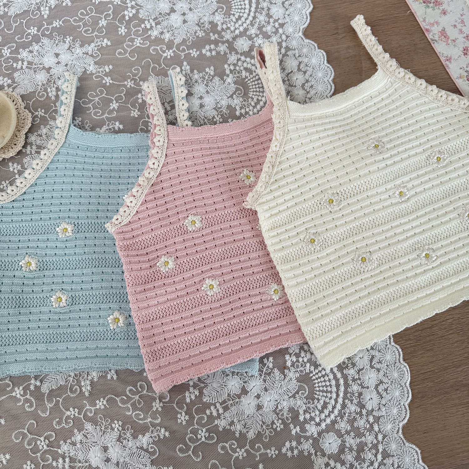 Cutemily 여름 소녀 니트 조끼 여성용 보물 하와이 할로우 귀여운 자수 꽃 얇은 카미솔