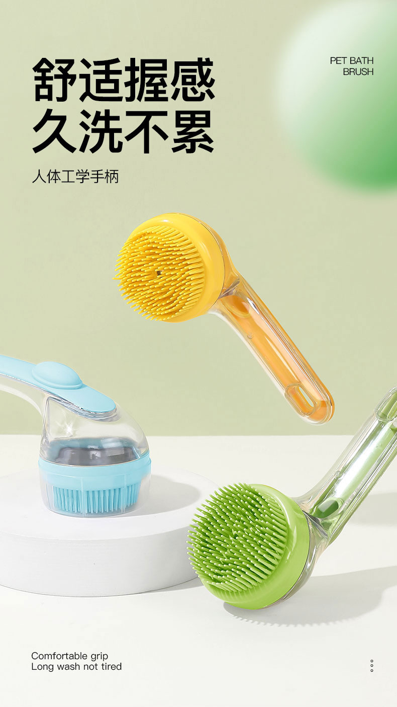 애완견 목욕 브러시, 강아지 목욕 브러시, 부드러운 실리콘, 액체를 추가할 수 있고 거품이 쉽게 발생하는 마사지 브러시스토어 가기