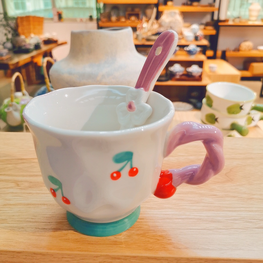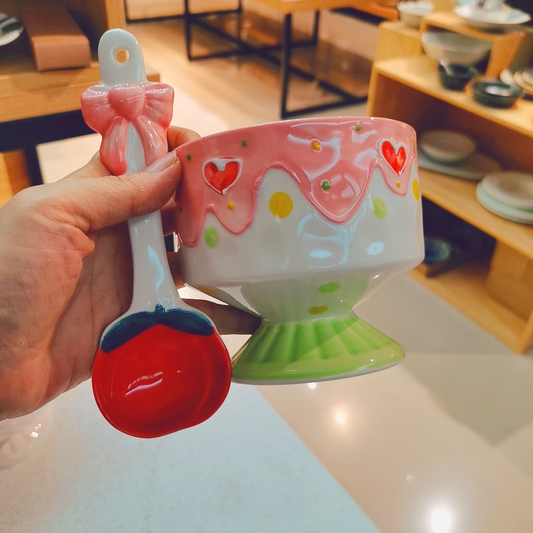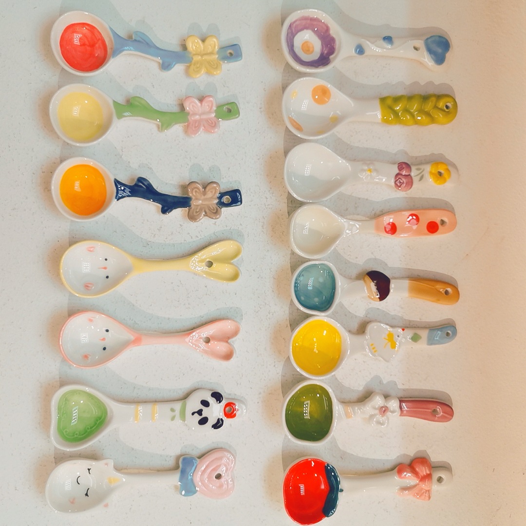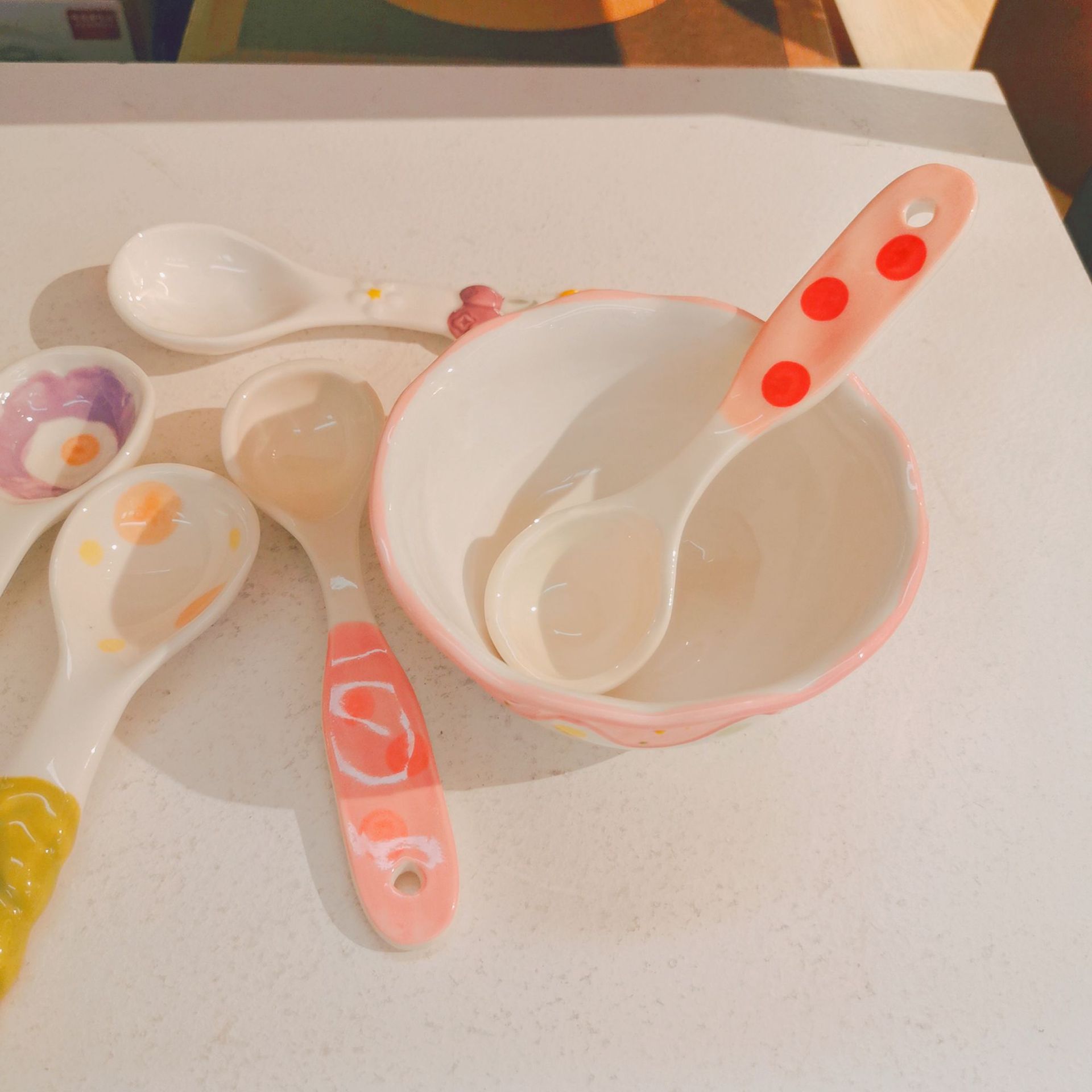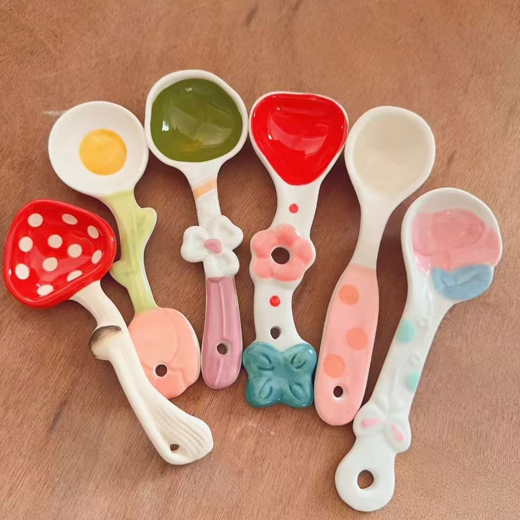 걸리 하트 세라믹 스푼, 귀여운 가정용 먹는 스푼, 고급스러운 디저트 스푼, 요거트 오트밀 베이비 엠보싱 스푼스토어 가기