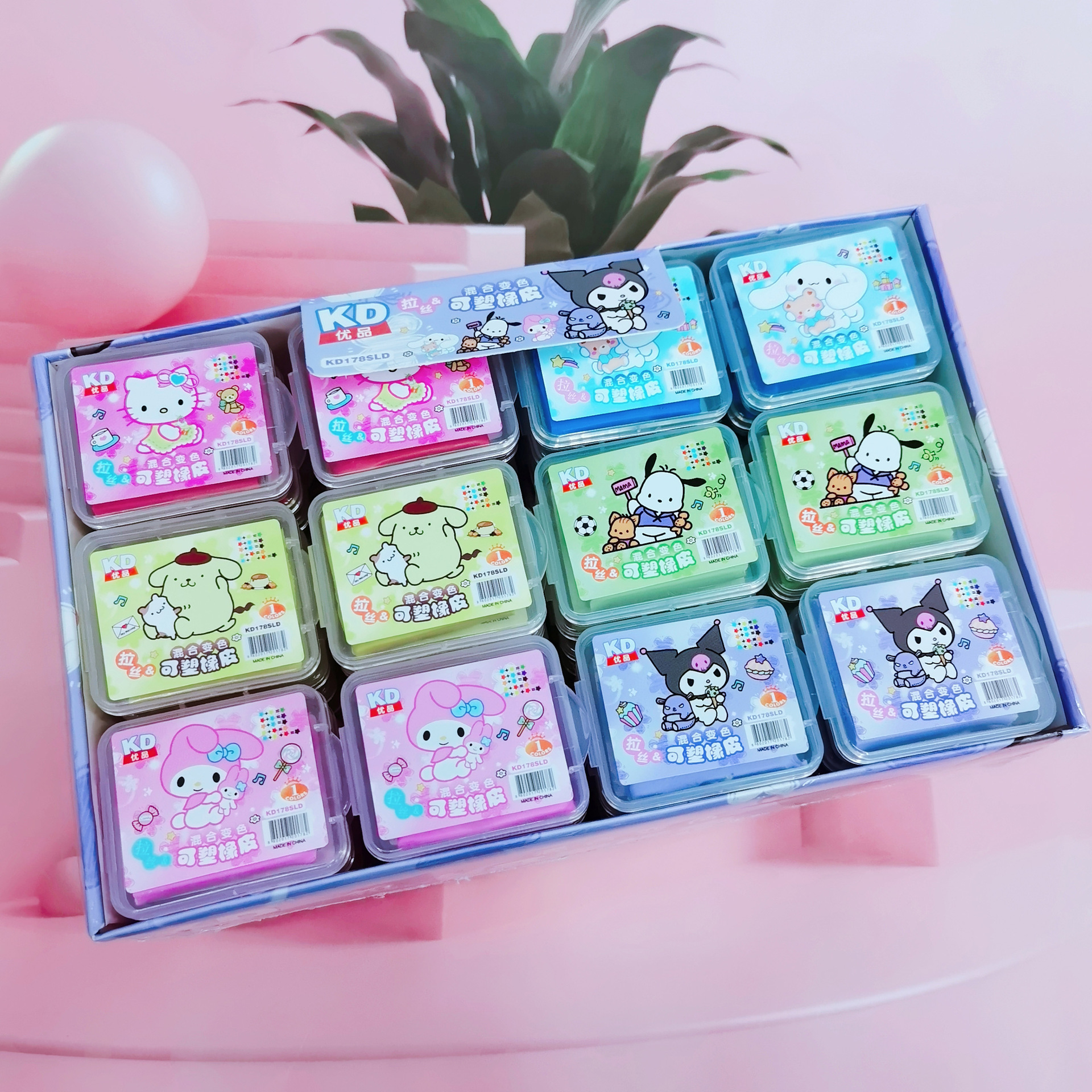 새로운 산리오 브러시 플라스틱 지우개 창조적 인 귀여운 귀여운 애완 동물 박스 지우개 학생 상 연필 지우개 배치