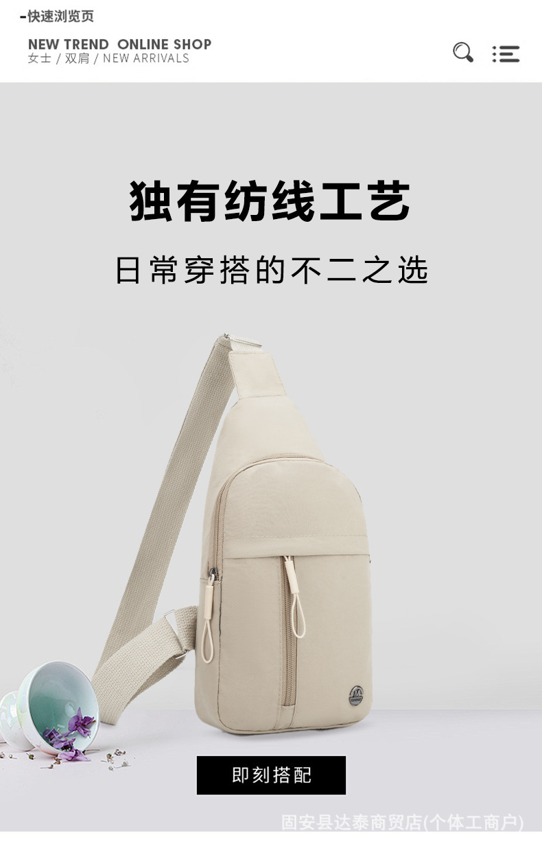 대외 무역 패션 크로스백, 심플한 여성용 가슴가방, 가볍고 발수성이 뛰어난 나일론 가방, 트렌디한 여행용 숄더백스토어 가기