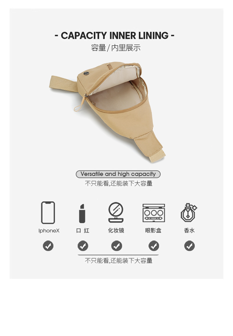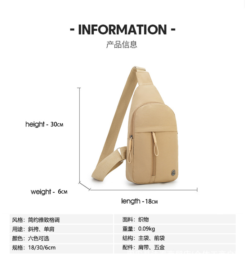 대외 무역 패션 크로스백, 심플한 여성용 가슴가방, 가볍고 발수성이 뛰어난 나일론 가방, 트렌디한 여행용 숄더백