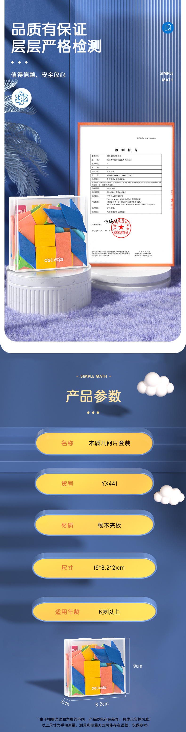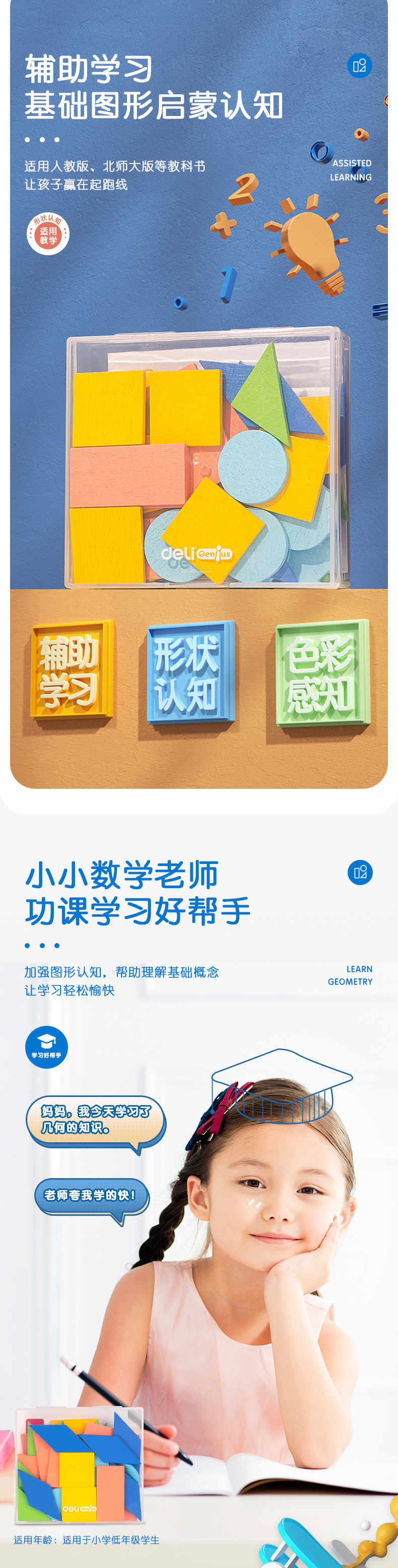 델리 YX441 초등학생을 위한 나무 기하학 조각 수학 교육 보조 1학년 평면 그래픽 직사각형 사각형스토어 가기