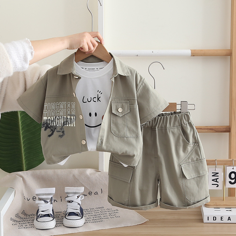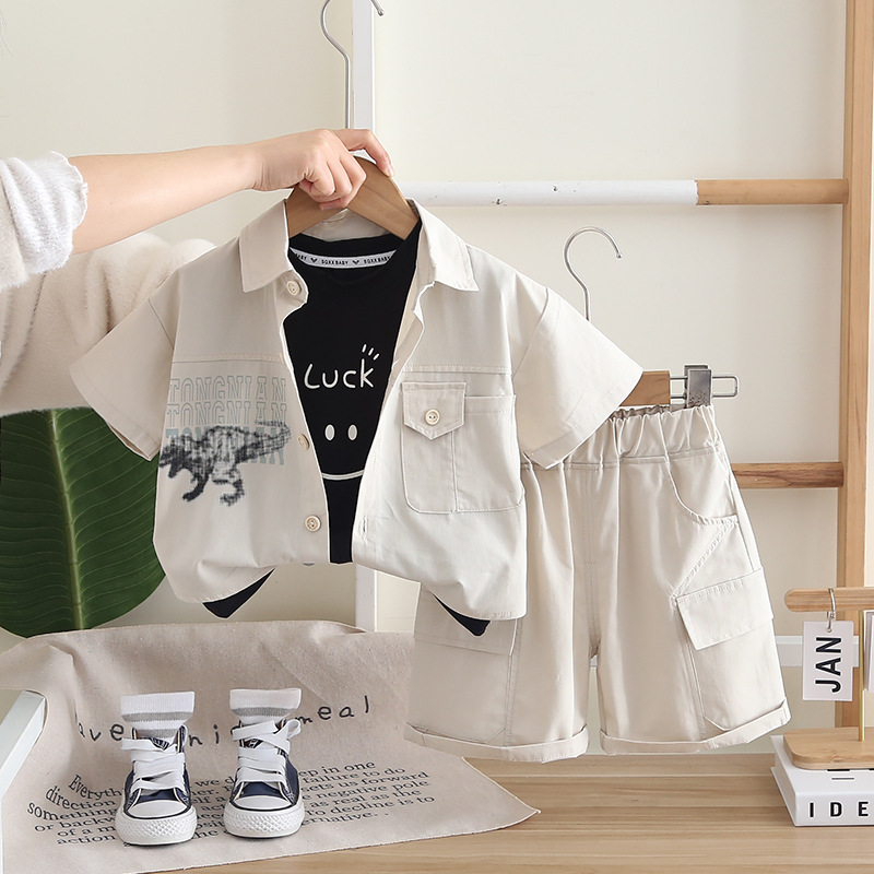 남자 아기 여름 세트 2025 새로운 서양식 소년 여름 착용 한국 스타일 도구 반팔 세 조각 어린이 옷스토어 가기