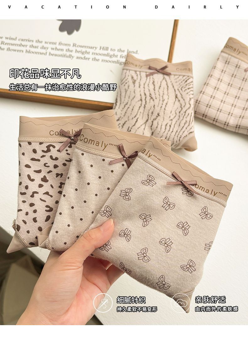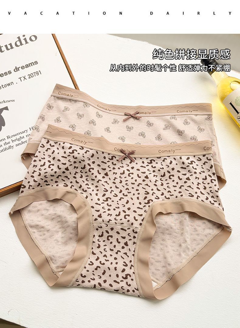 레오파드 프린트 7A 속옷 소녀 순수 코튼 항균 코튼 가랑이 올 시즌 여성 2025 새로운 중간 허리 섹시한 삼각형 반바지스토어 가기