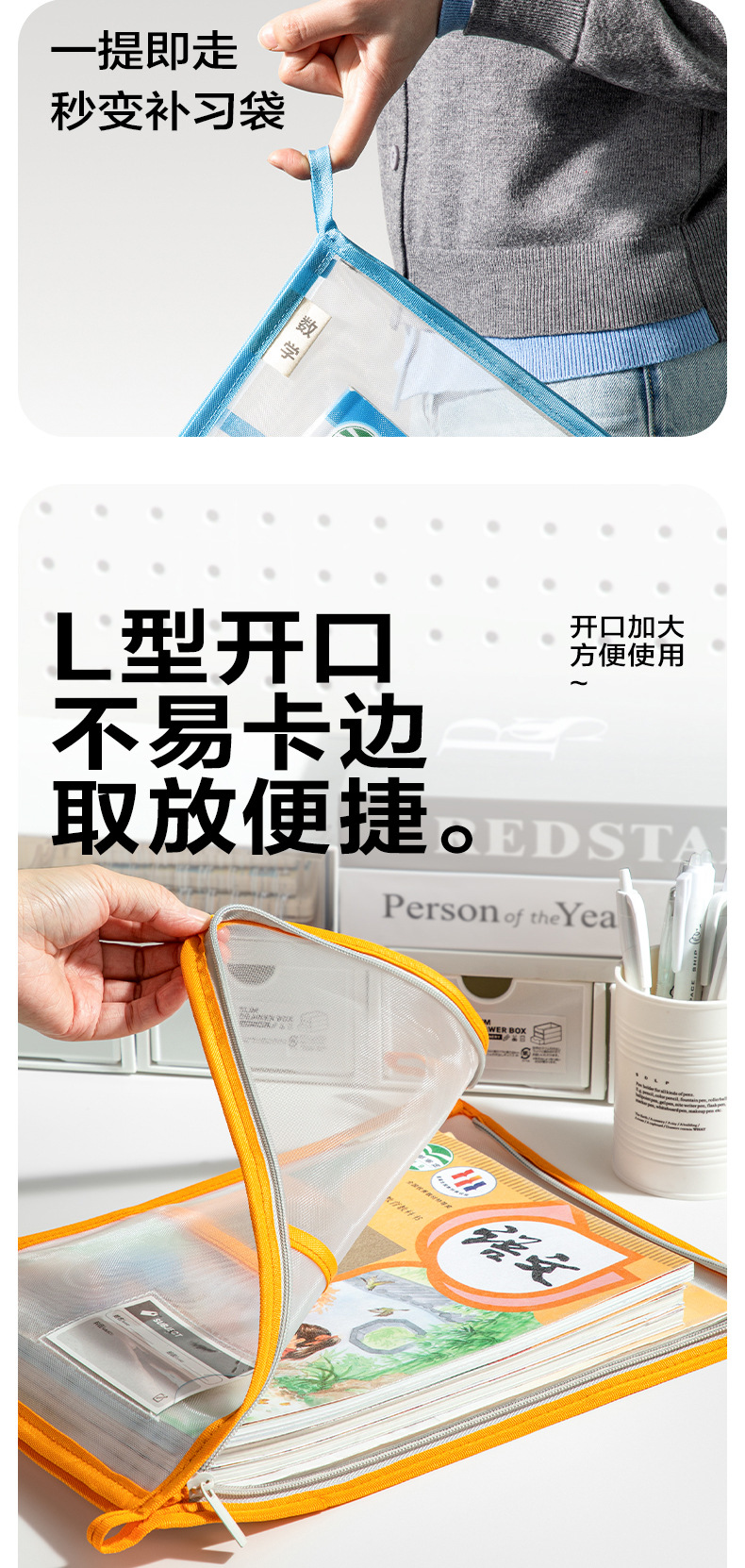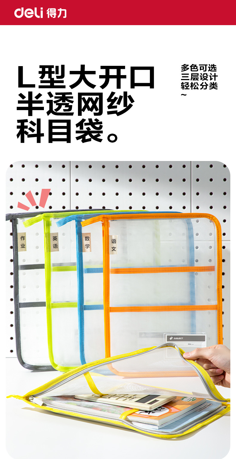 델리 L 형 훈육 지퍼 가방 투명 문서 가방 정보 가방 3 차원 메쉬 가방 운영 보관 가방 PP136스토어 가기