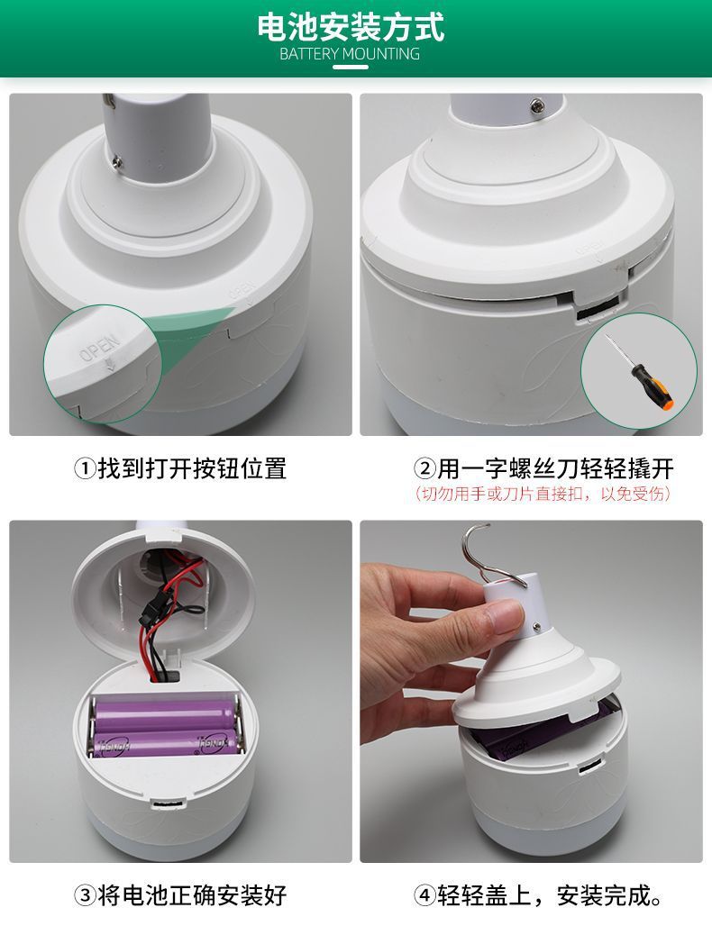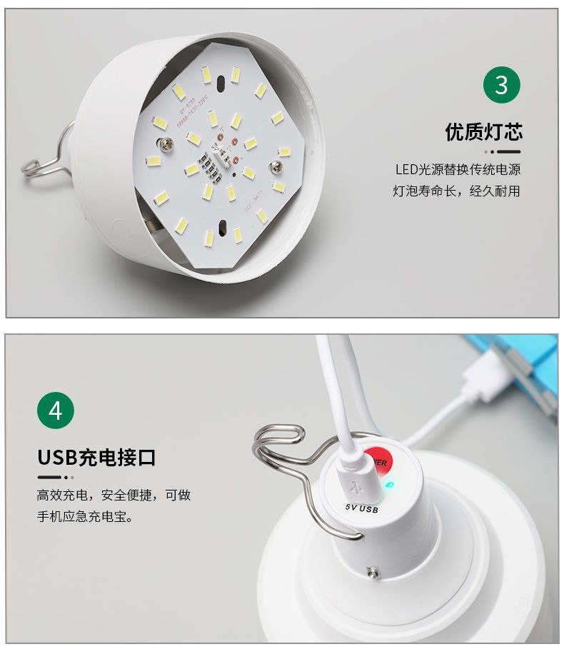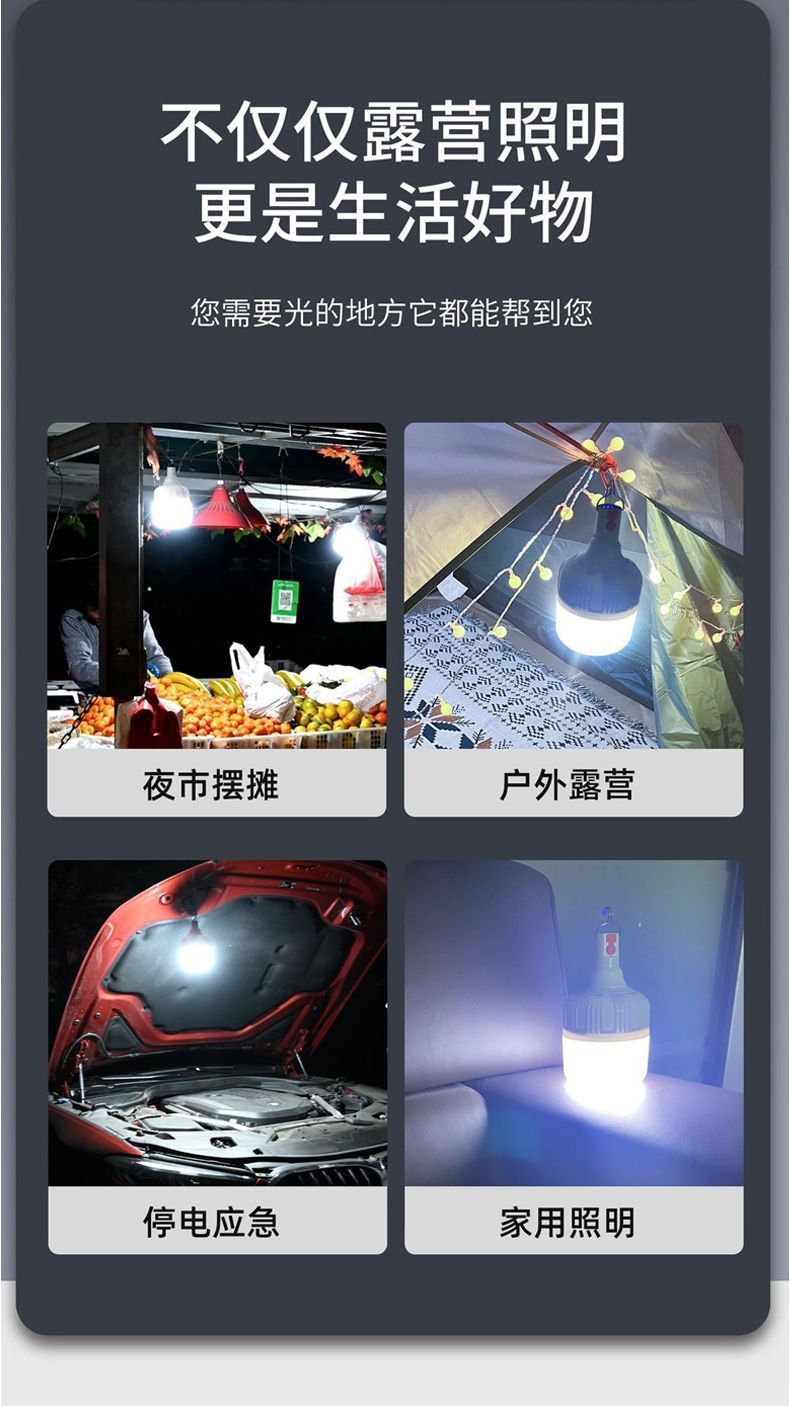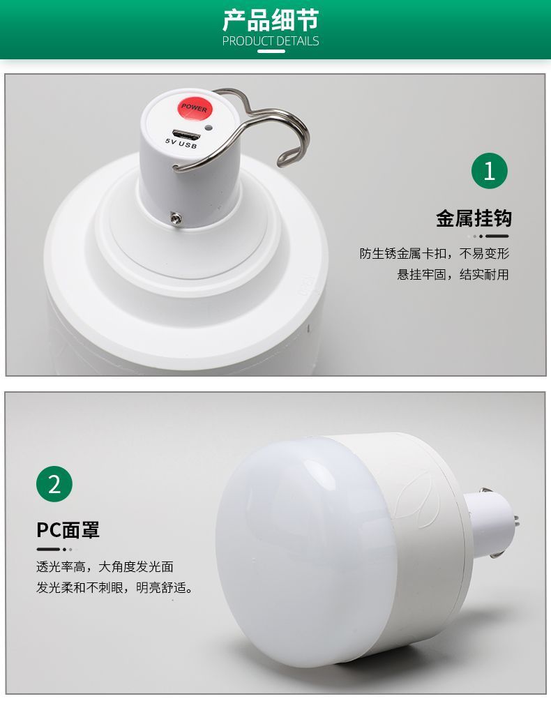 캠핑 마구간 야간 시장 충전식 전구 18650 리튬 배터리 분리 가능한 야외 조명 전구스토어 가기