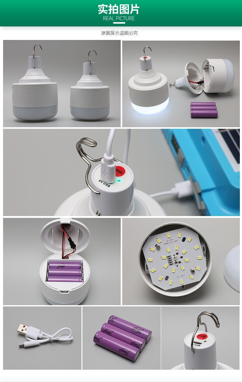 캠핑 마구간 야간 시장 충전식 전구 18650 리튬 배터리 분리 가능한 야외 조명 전구