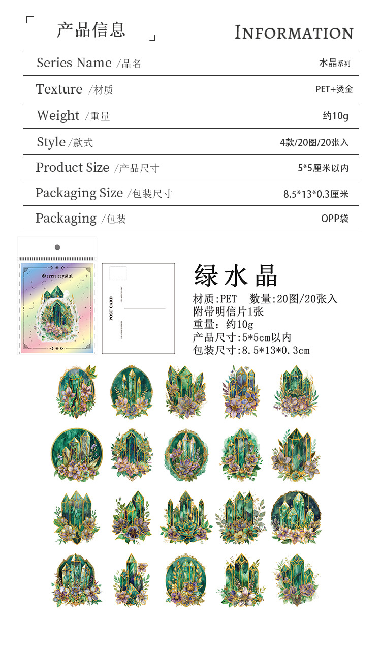 국경 고대 숲 PET 청동 스티커 가방 크리스탈 시리즈 20 시작 계정 백킹 콜라주 장식 4스토어 가기