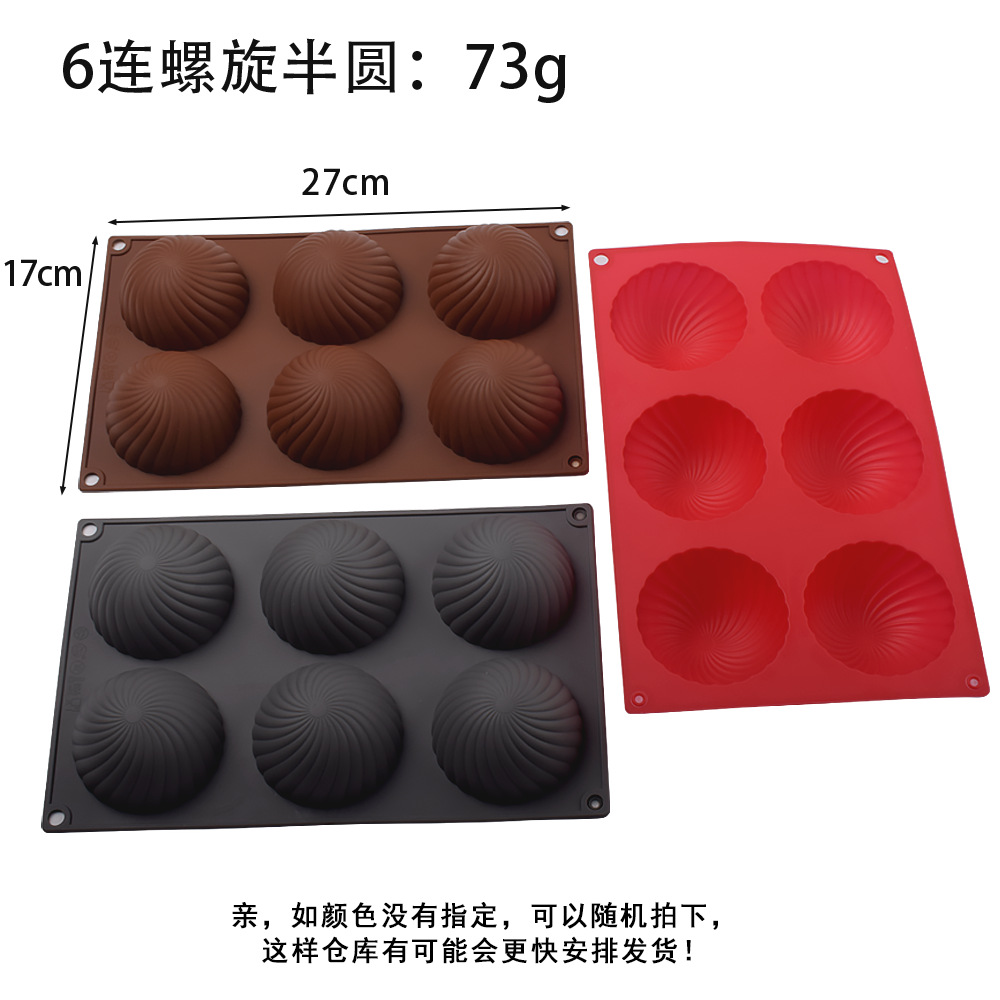 재고 6 심지어 반원형 나선형 패턴 실리콘 몰드 베이킹 케이크 장식 alms 케이크 퍼프 주먹밥 금형 DIY