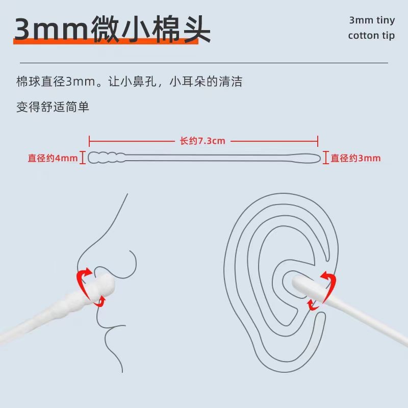 Haishi Hainuo 유아용 의료용 면봉 부드러운 면봉 아기 귀 청소 종이 샤프트 면봉 아기 면봉스토어 가기