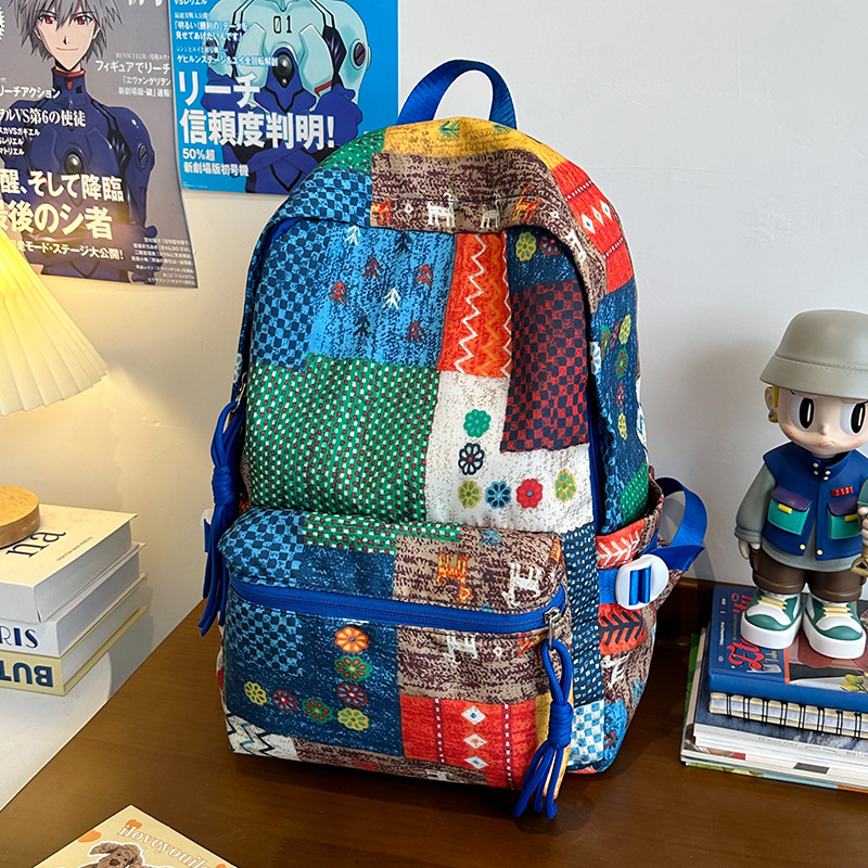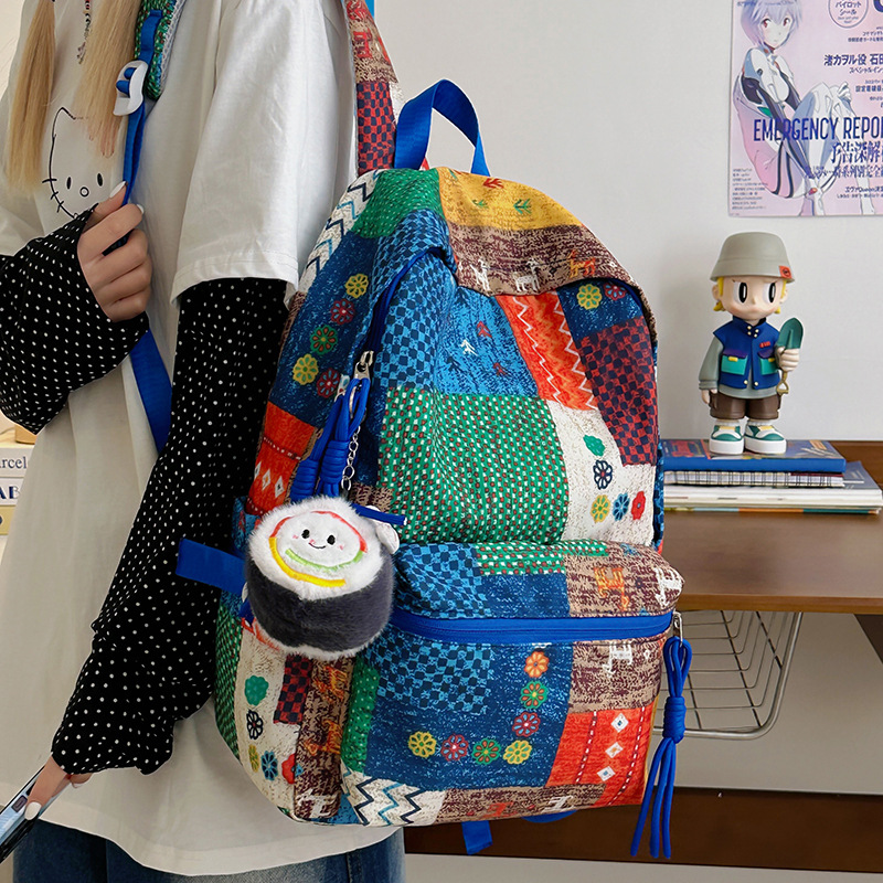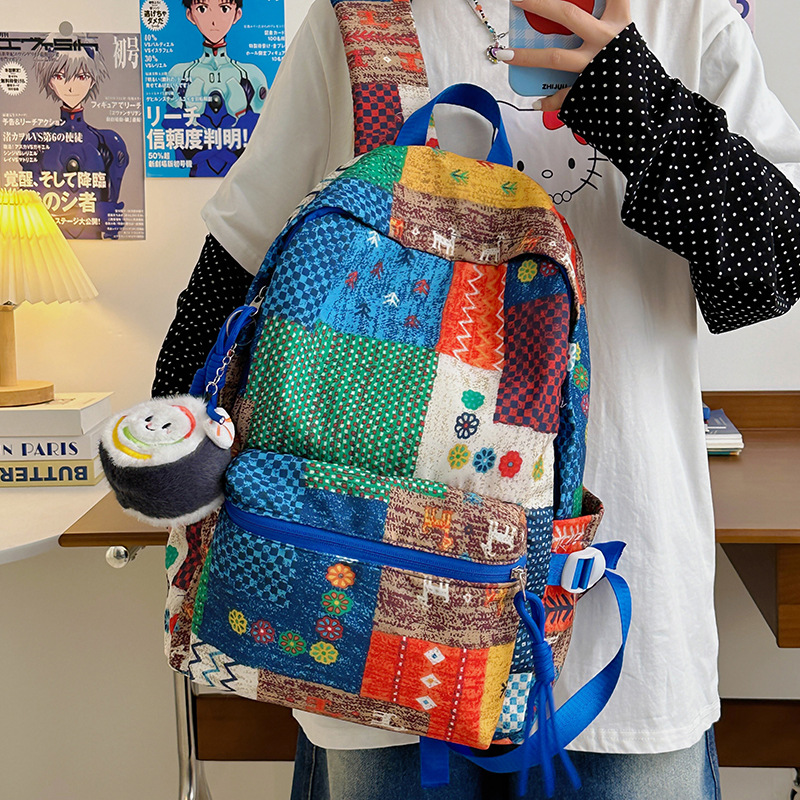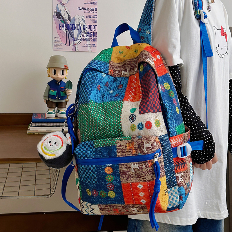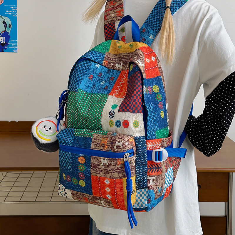 새로운 도착 꽃 헝겊 백팩 유행 색상 대비 민족 스타일 대용량 주니어 고등학교 학생 스쿨백 올 매치 캐주얼 가방