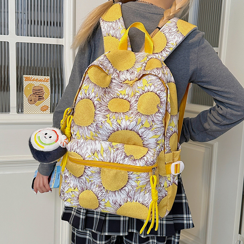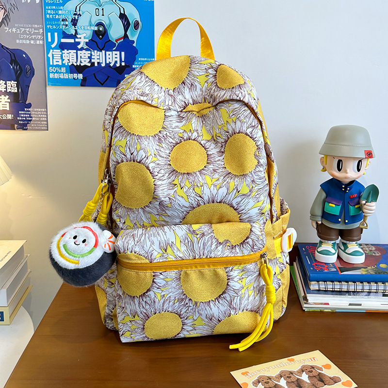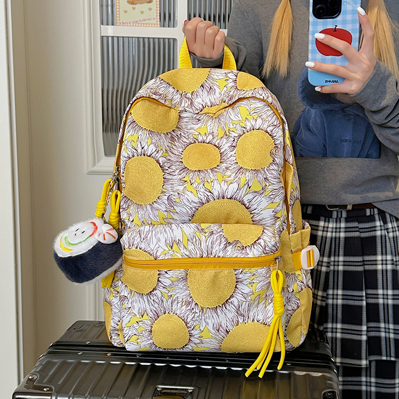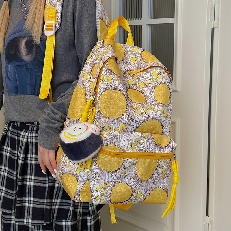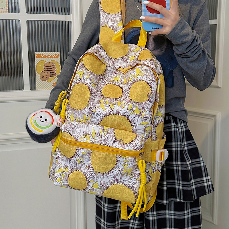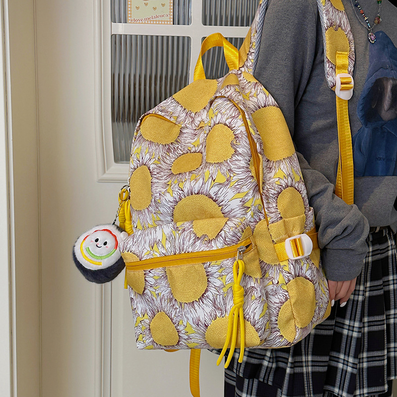 새로운 도착 꽃 헝겊 백팩 유행 색상 대비 민족 스타일 대용량 주니어 고등학교 학생 스쿨백 올 매치 캐주얼 가방