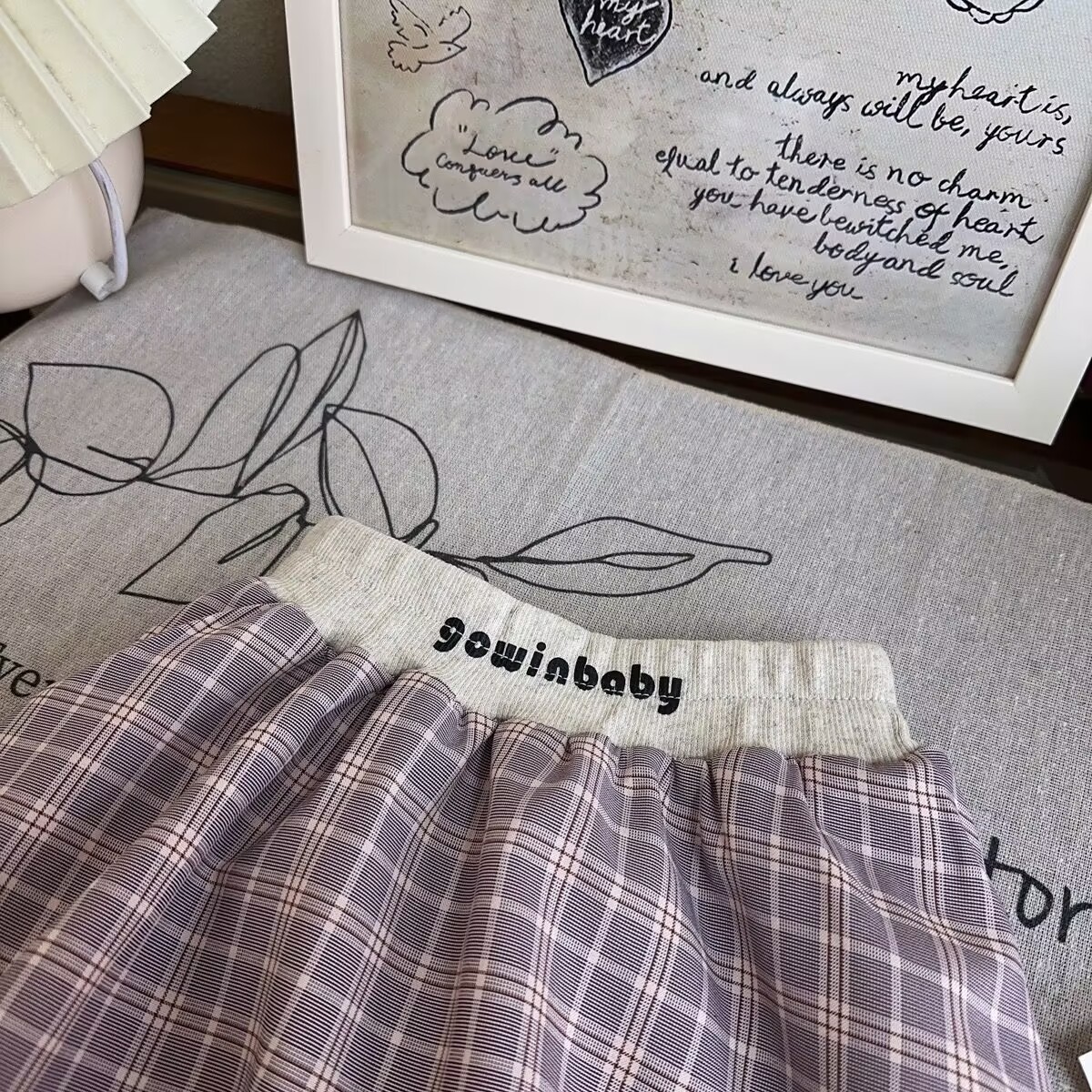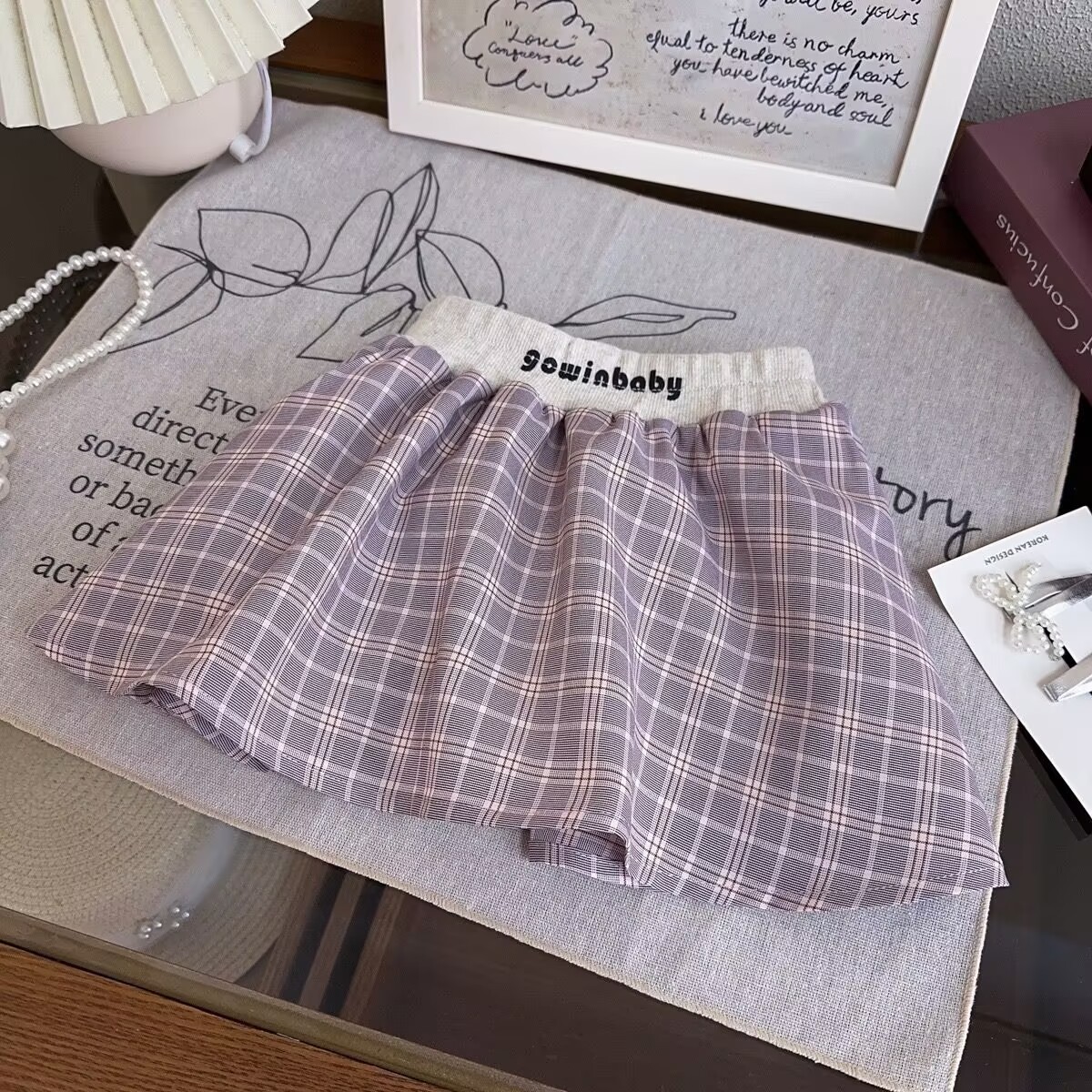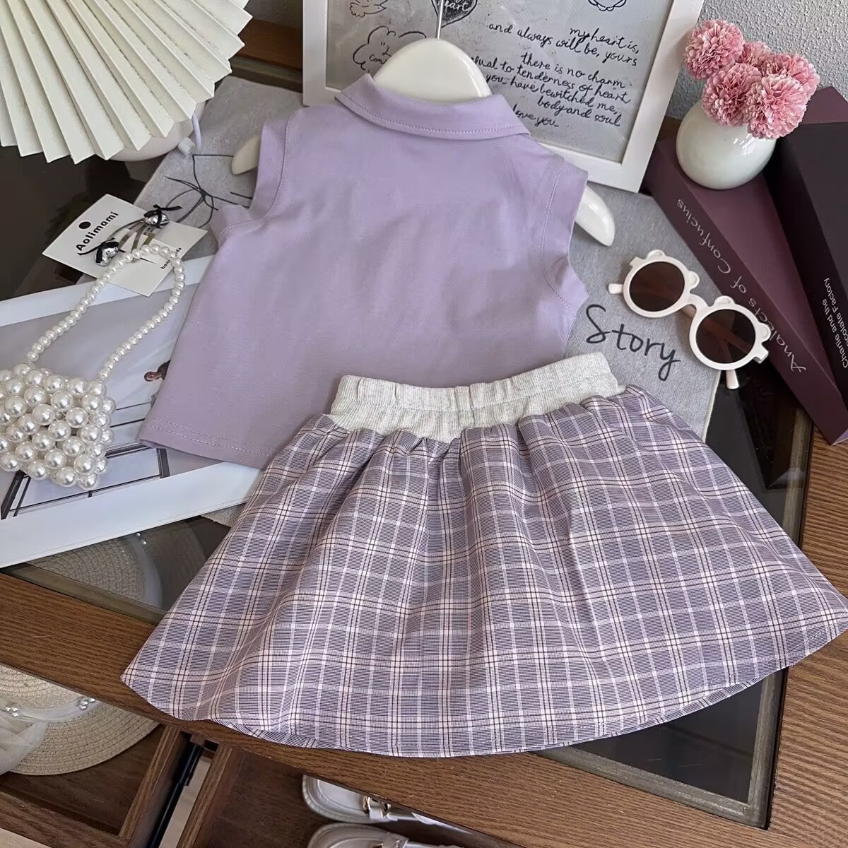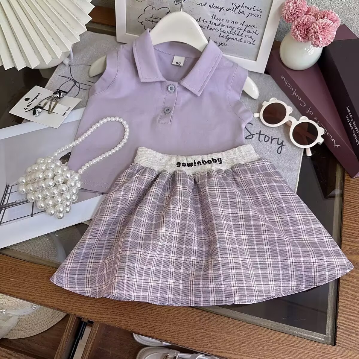 여름 소녀 세트 2025 새로운 티셔츠 탑 격자 무늬 스커트 한국 스타일 어린이 공주 투피스 세트