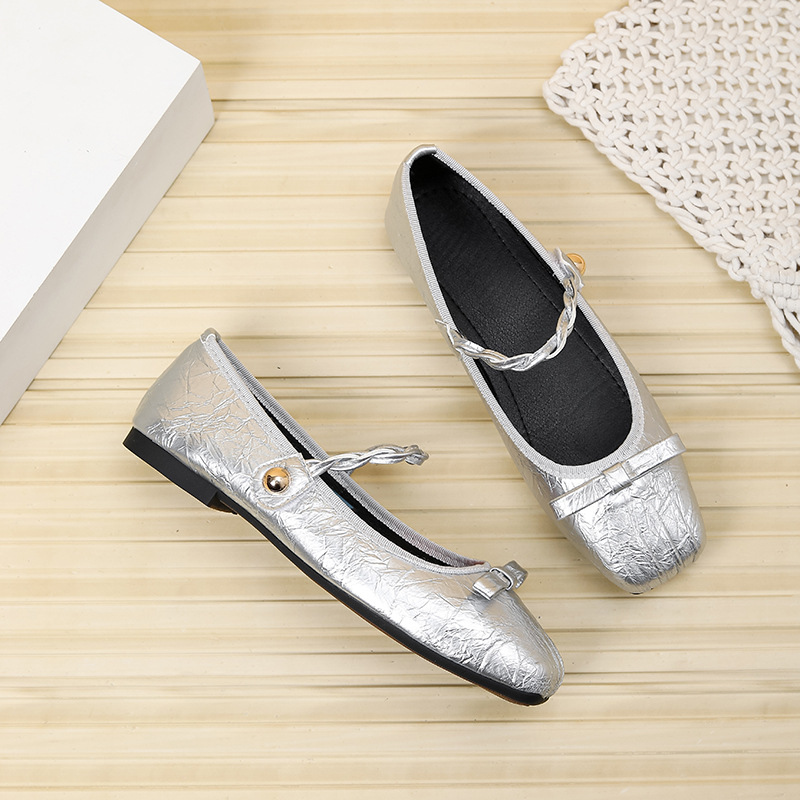 실버 프랑스 메리 제인 신발 여성 2025 봄 새로운 광장 발가락 요정 스타일 활 얕은 입 플랫 싱글 신발스토어 가기