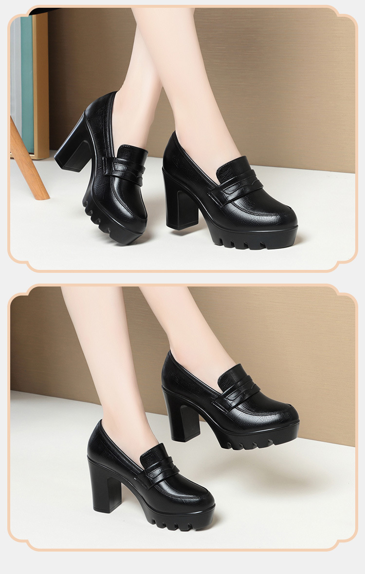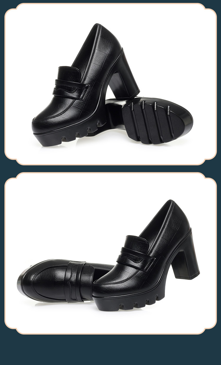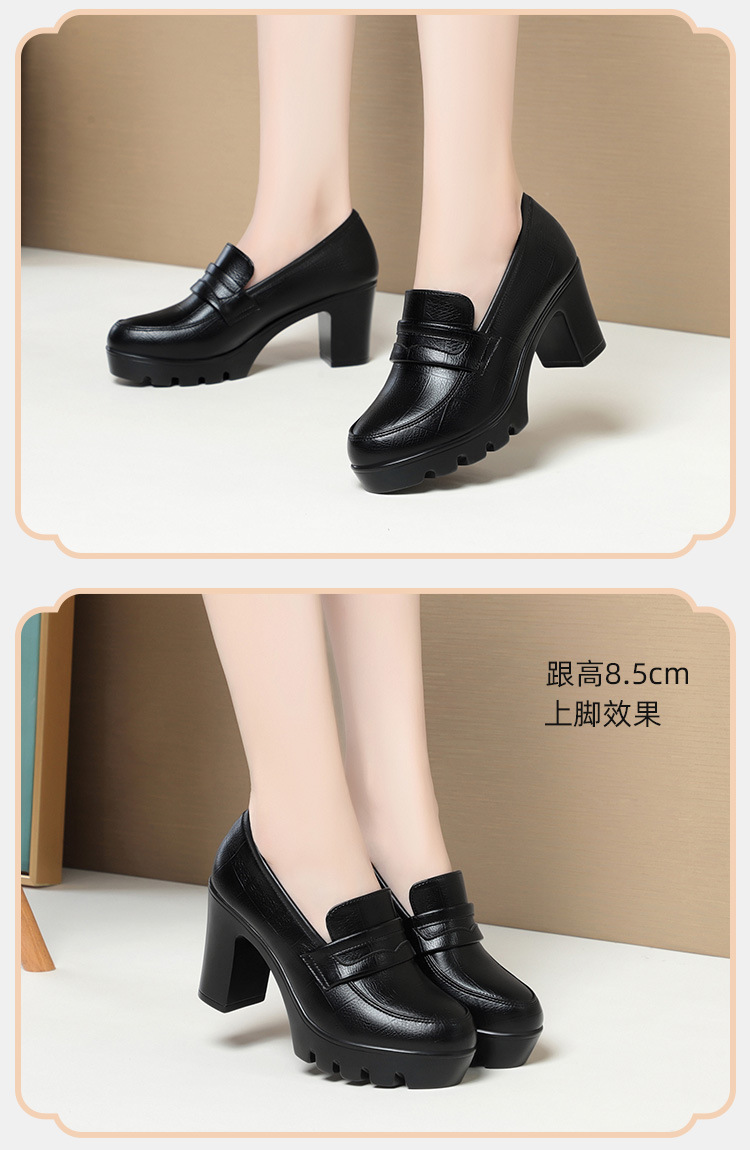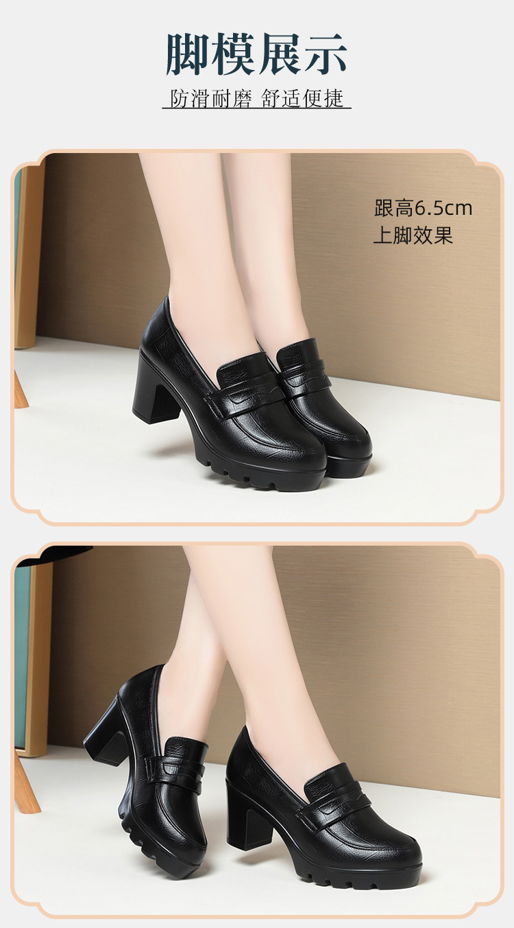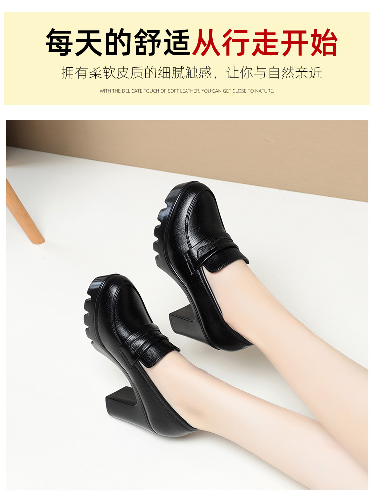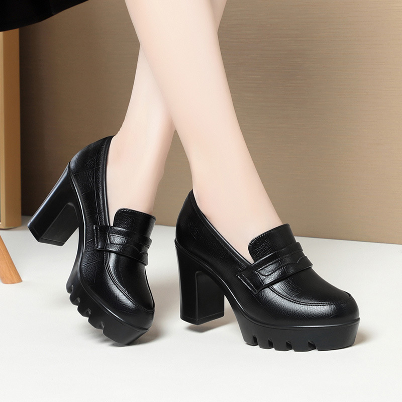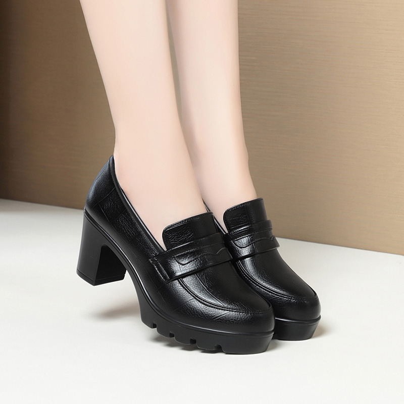 하이힐 엄마 신발 슬립 온 올매치 두꺼운 바닥 깊은 입 피곤하지 않은 발 둥근 머리 가죽 신발 여성 방수 플랫폼 패션 봄과 가을