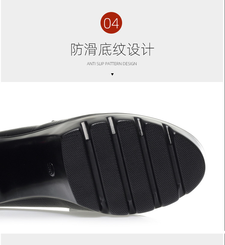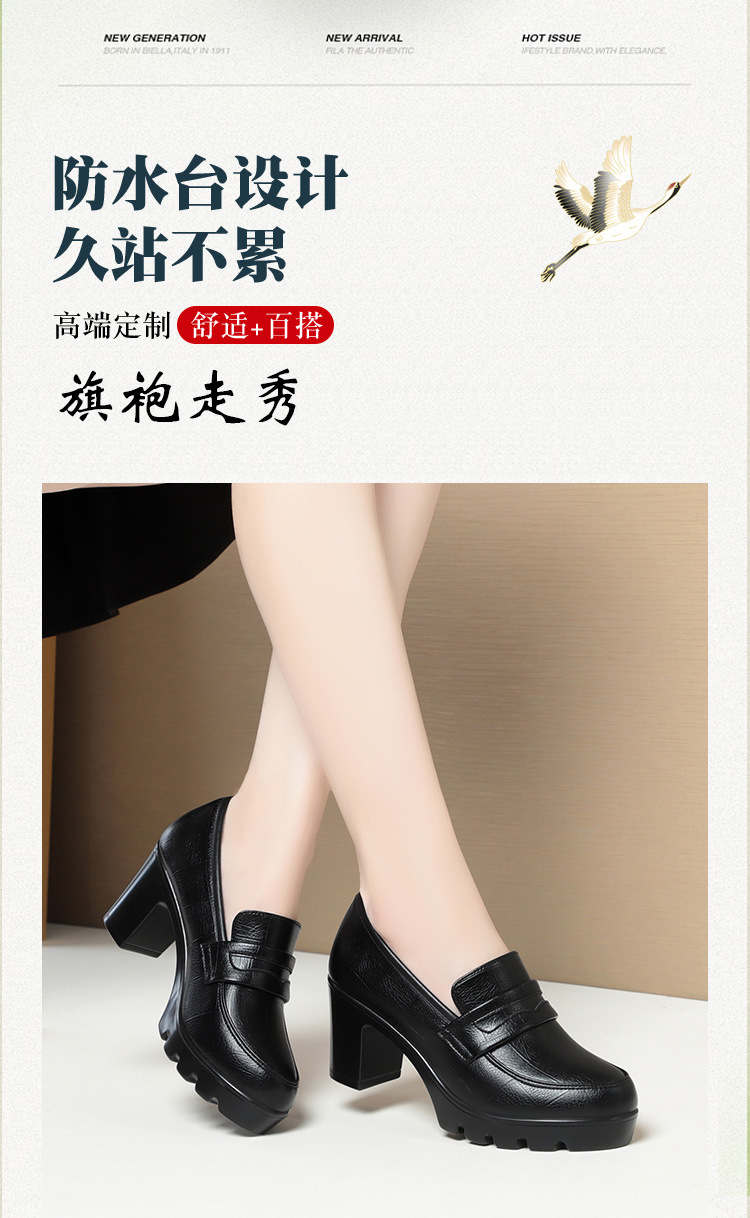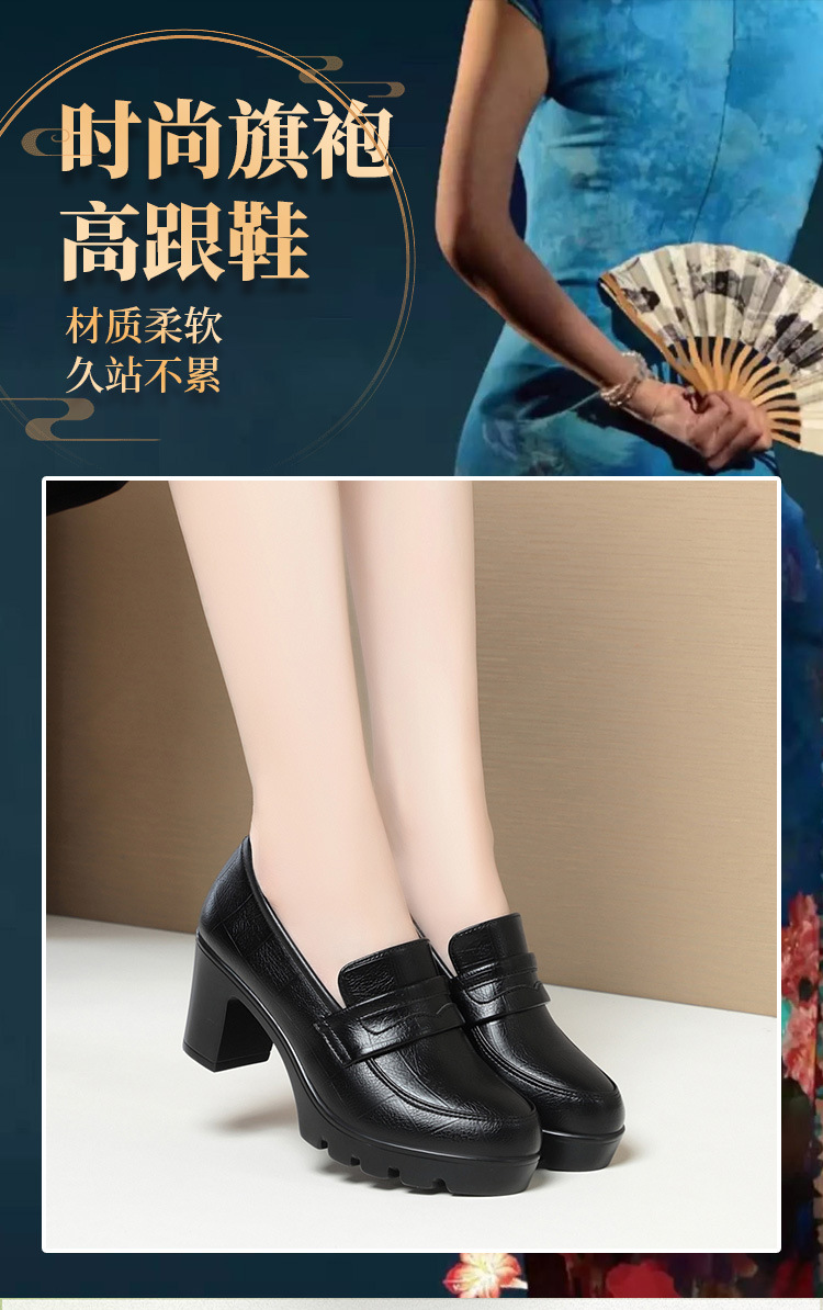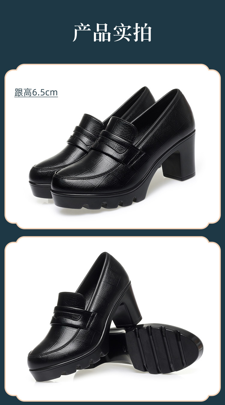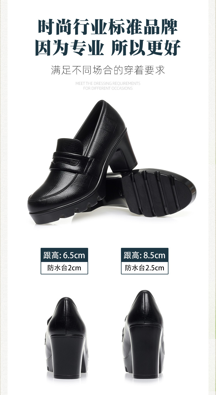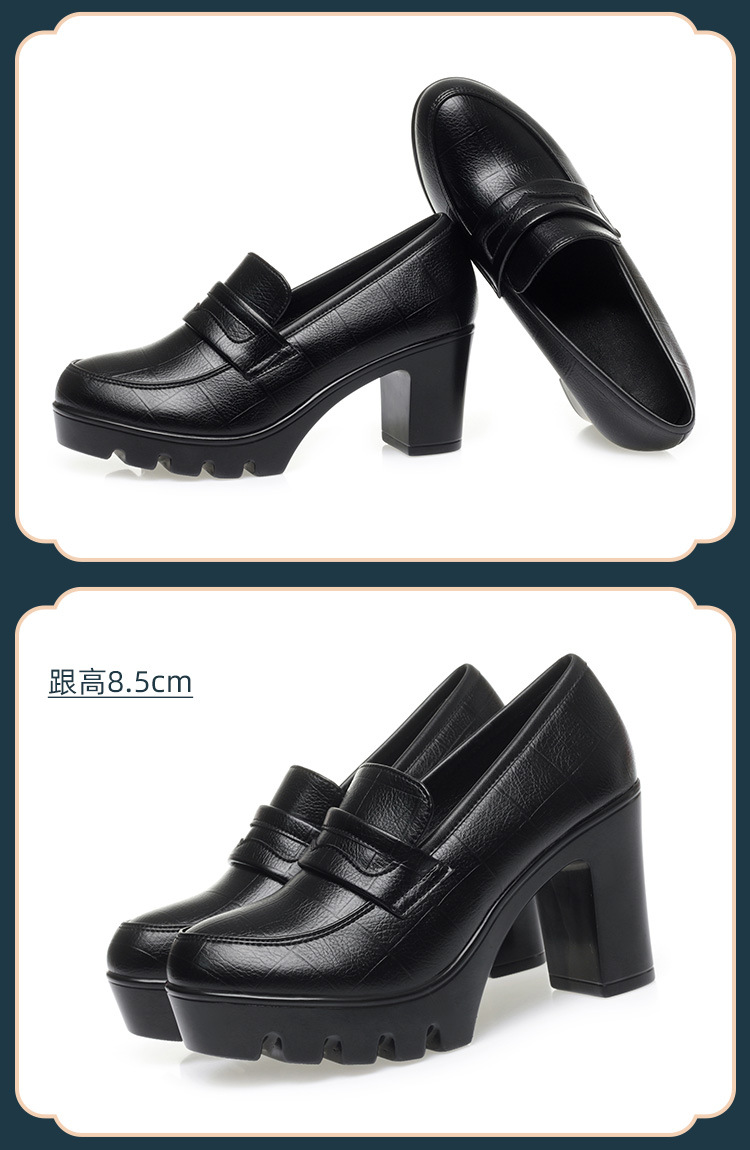 하이힐 엄마 신발 슬립 온 올매치 두꺼운 바닥 깊은 입 피곤하지 않은 발 둥근 머리 가죽 신발 여성 방수 플랫폼 패션 봄과 가을