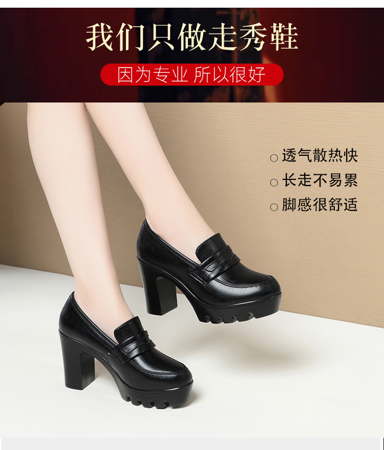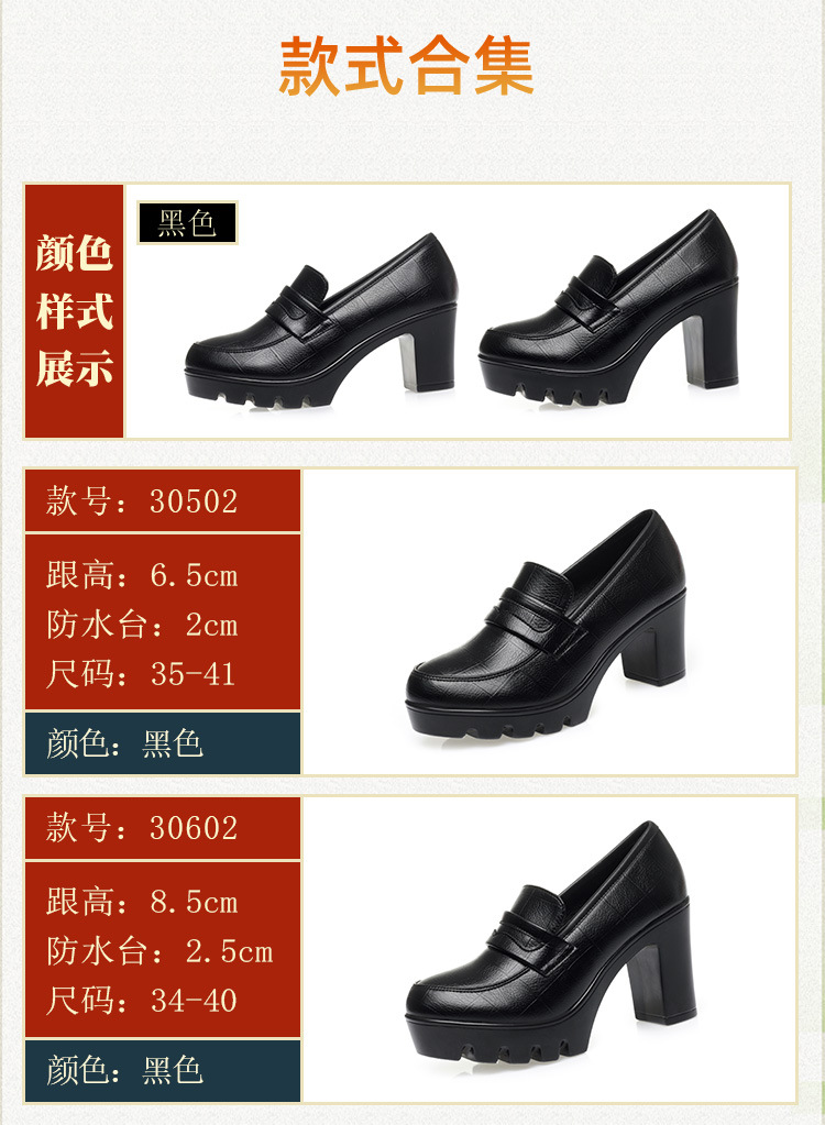 하이힐 엄마 신발 슬립 온 올매치 두꺼운 바닥 깊은 입 피곤하지 않은 발 둥근 머리 가죽 신발 여성 방수 플랫폼 패션 봄과 가을스토어 가기
