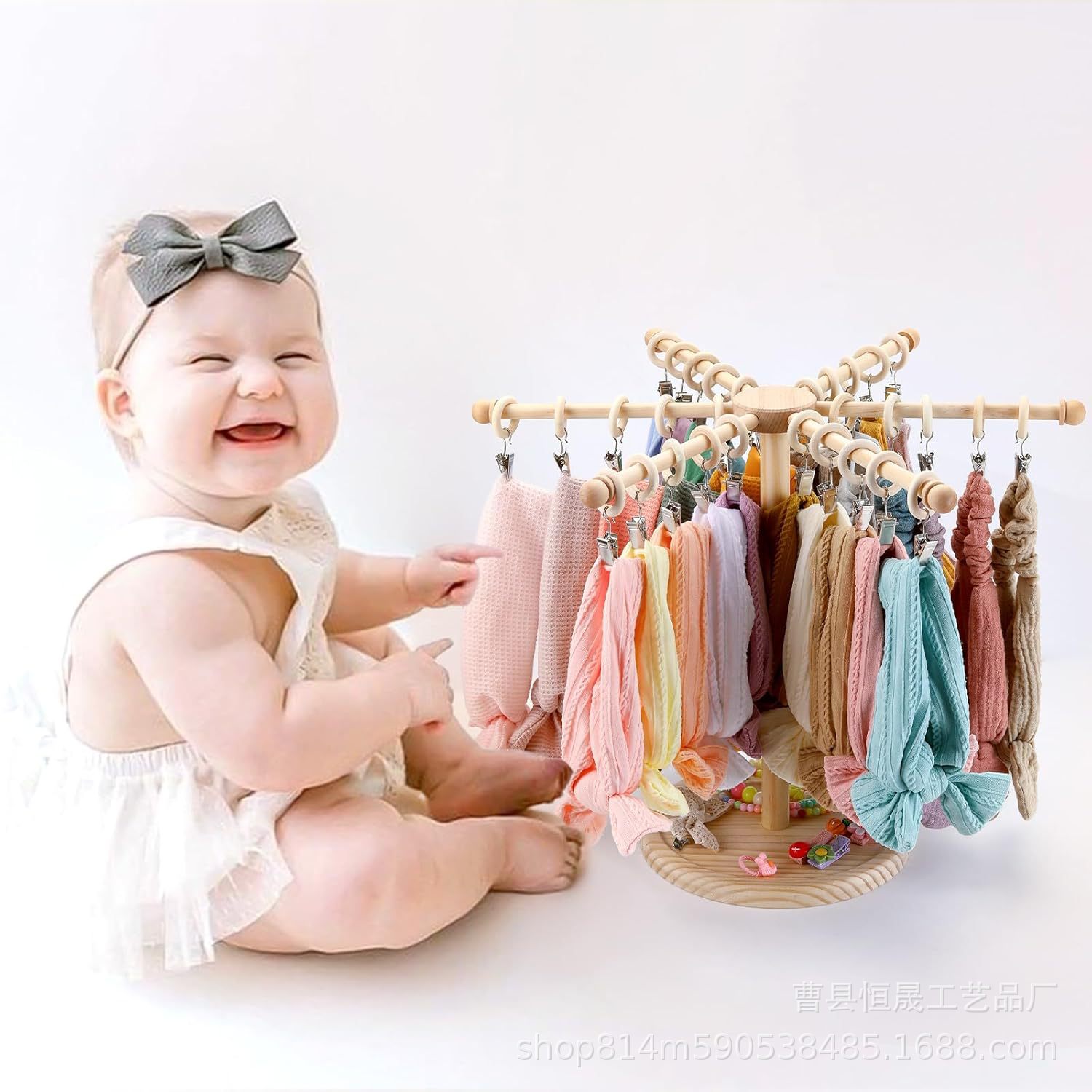 사용자 정의 나무 아기 머리띠 홀더 회전 아기 머리띠 홀더 머리띠 헤어 액세서리 주최자 헤어 액세서리 머리띠 보관 랙스토어 가기