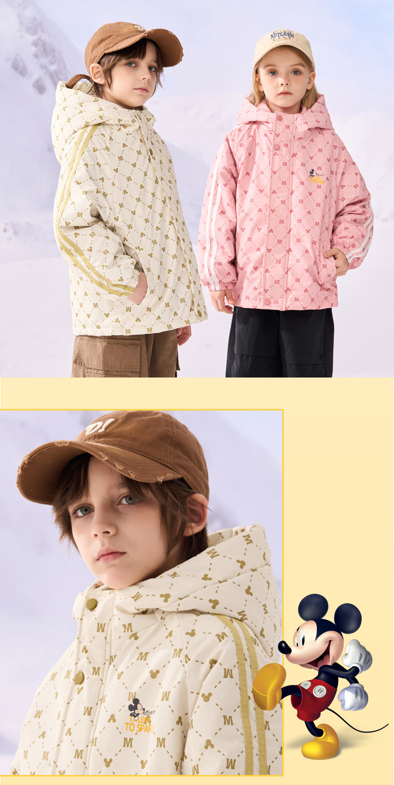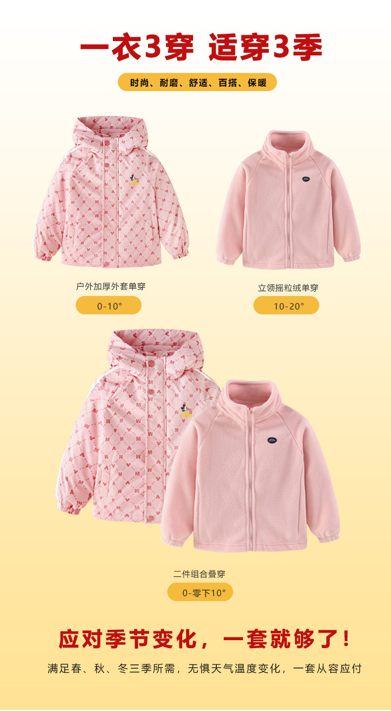 디즈니 2024 새로운 어린이 야외 재킷 어린이 투인원 폴라 플리스 투피스 세트