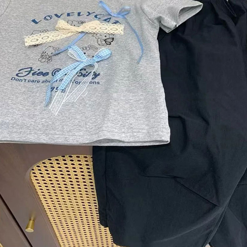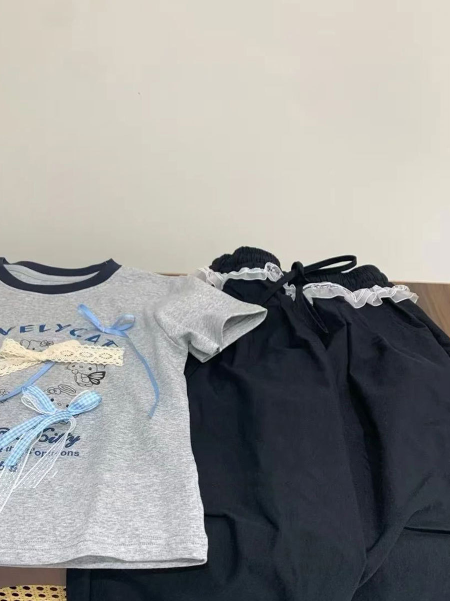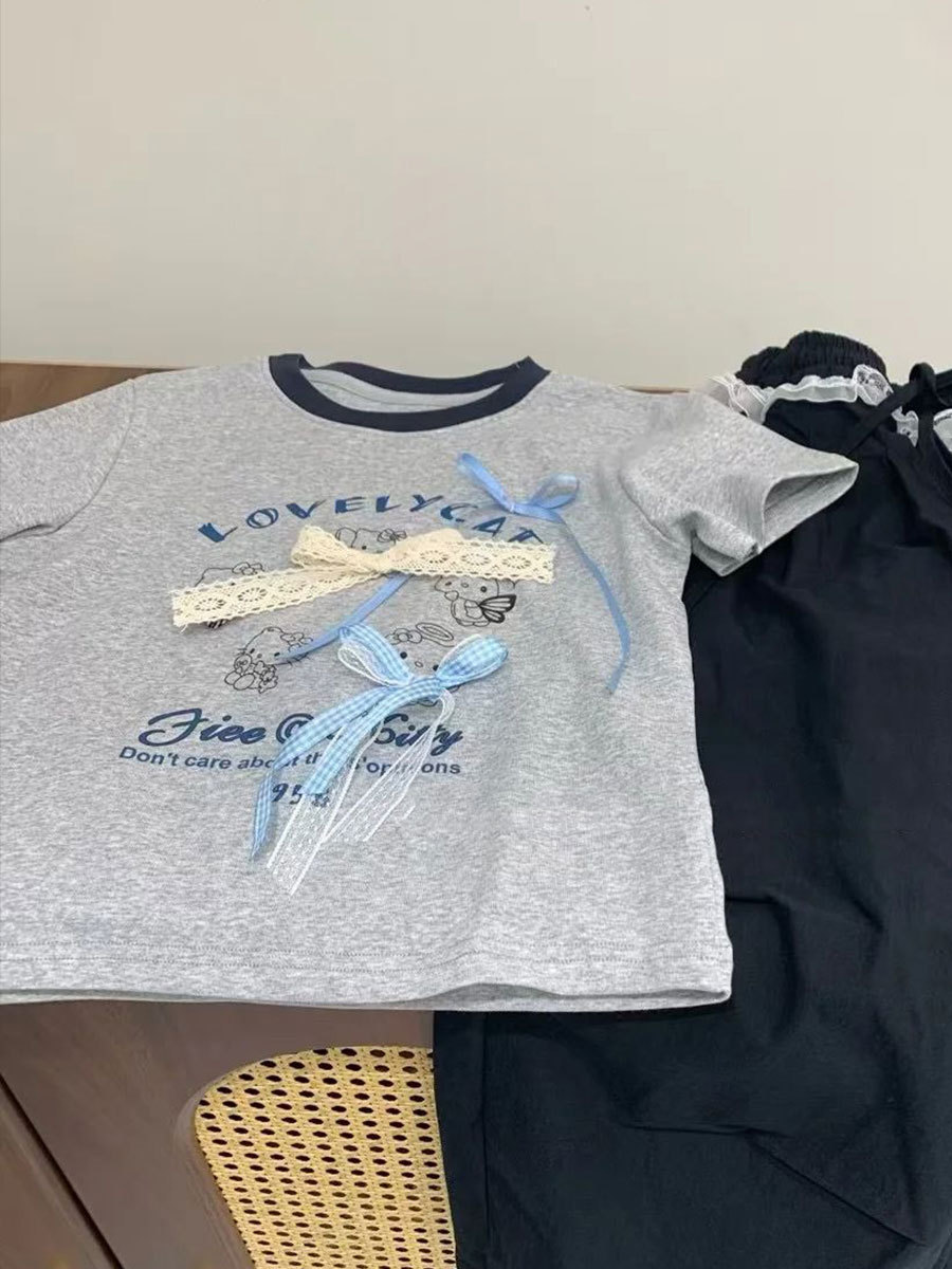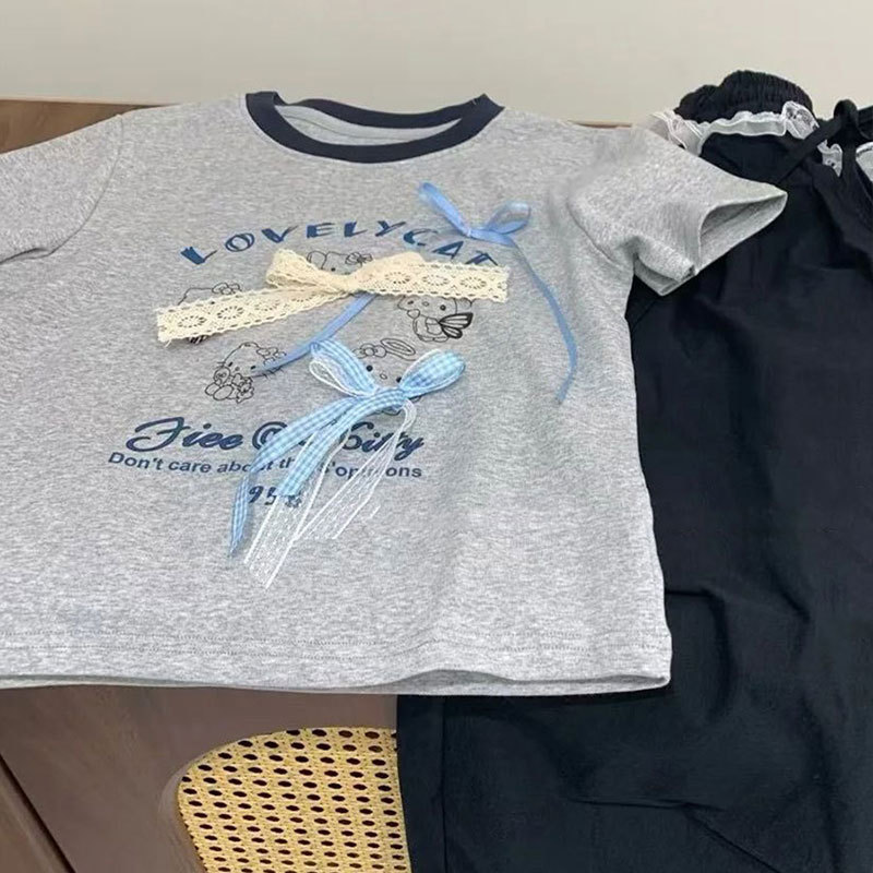 여자 반팔 티셔츠 어린이 코트 봄과 여름 2025 새로운 큰 아동베이스 셔츠 회색 한국 팬 튀긴 거리 옷 1스토어 가기