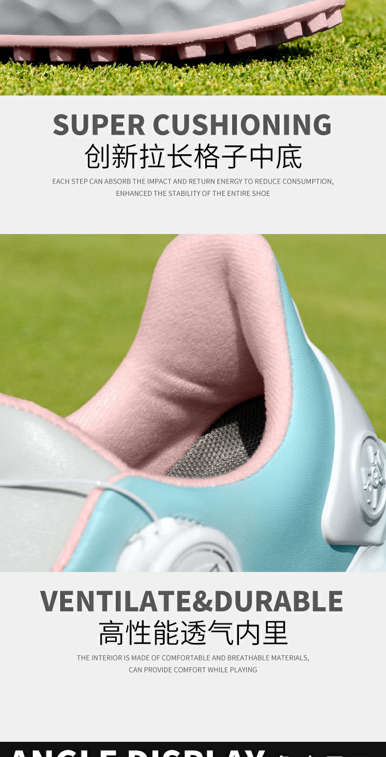 拉长格子中底,提供挥杆时的稳定性,外扩边缘,提供久站的舒适度 |