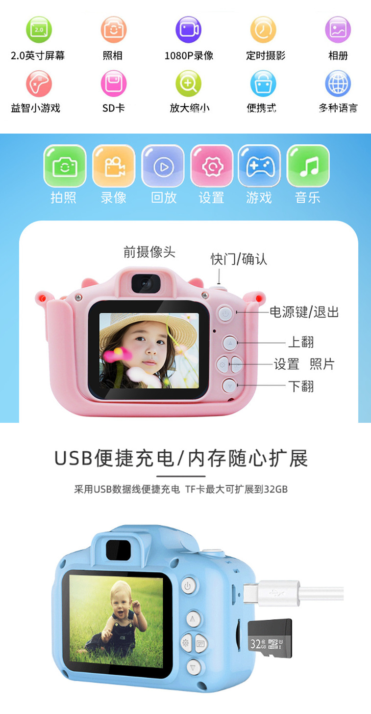 어린이용 고화질 전면 및 후면 듀얼 카메라 카메라 PCBA 솔루션 개발 대형 스크린 디스플레이 디지털 카메라스토어 가기