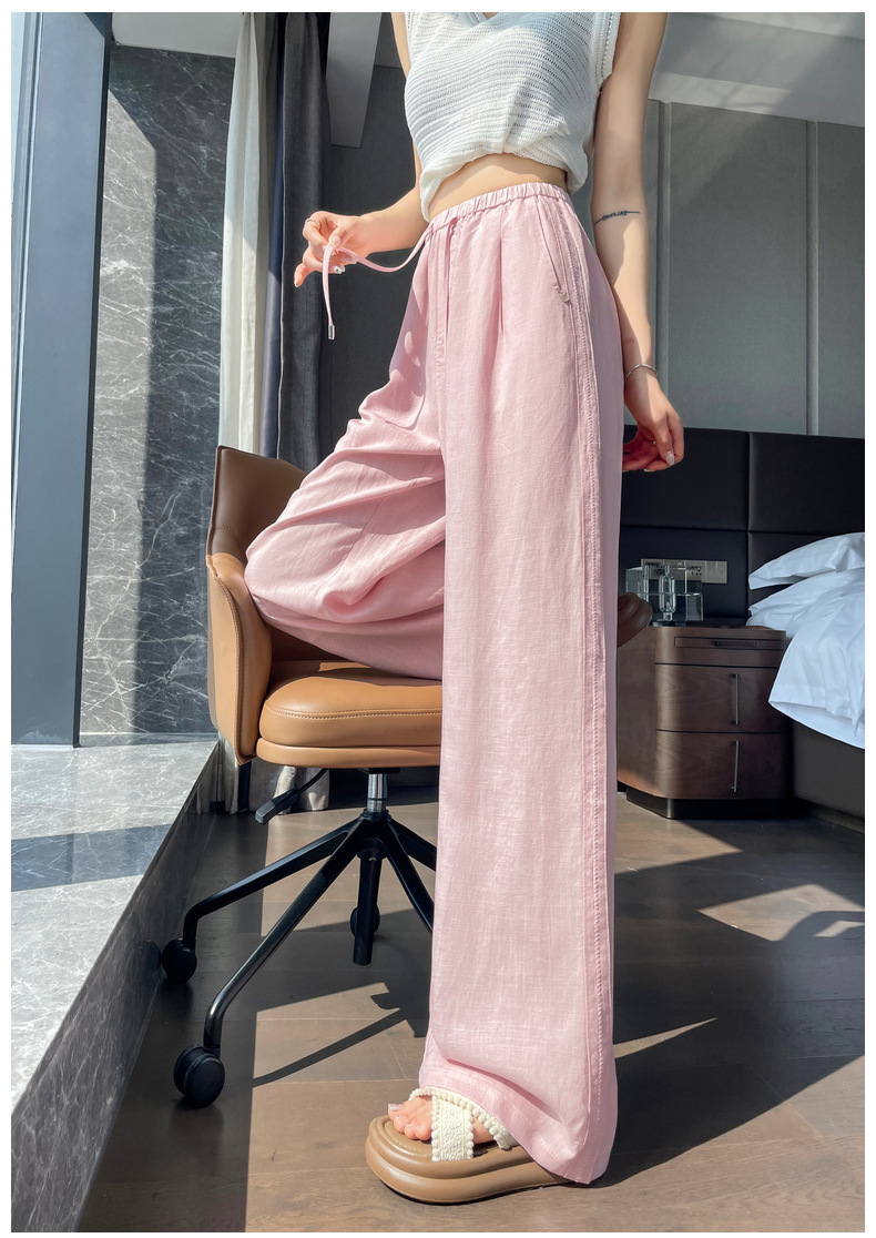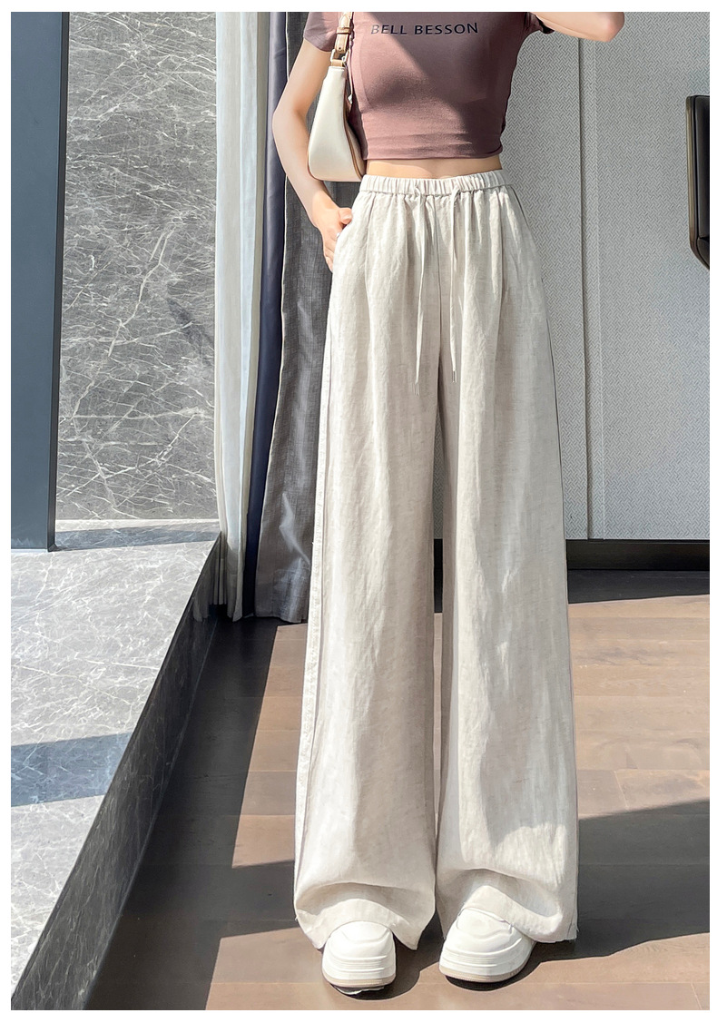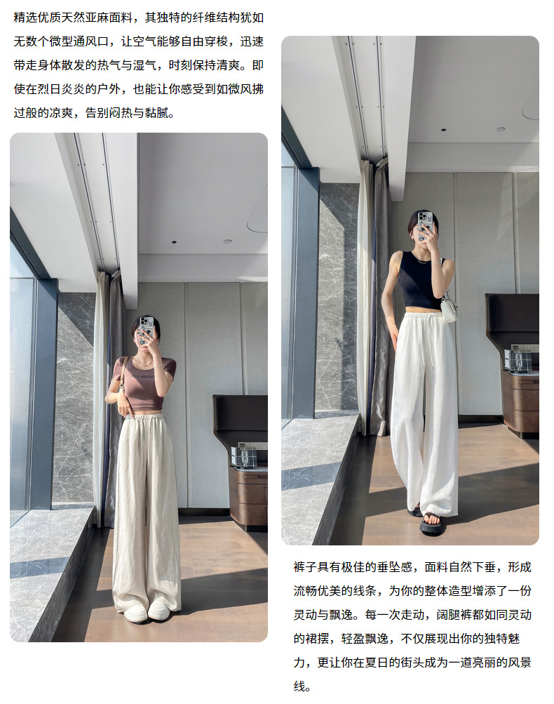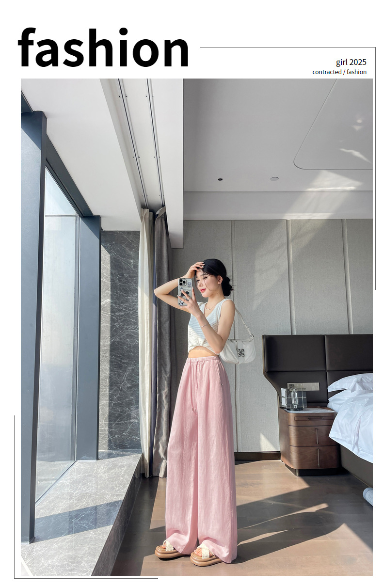 2025 여름 리넨 와이드 레그 바지 여성용 간단한 얇은 Guoxie 게으른 우아한 캐주얼 덤프 야마모토 바지스토어 가기