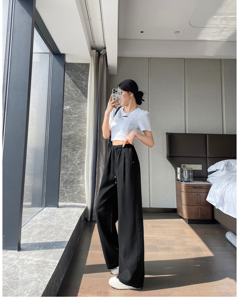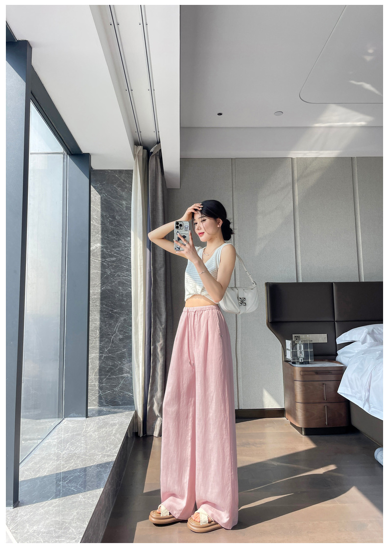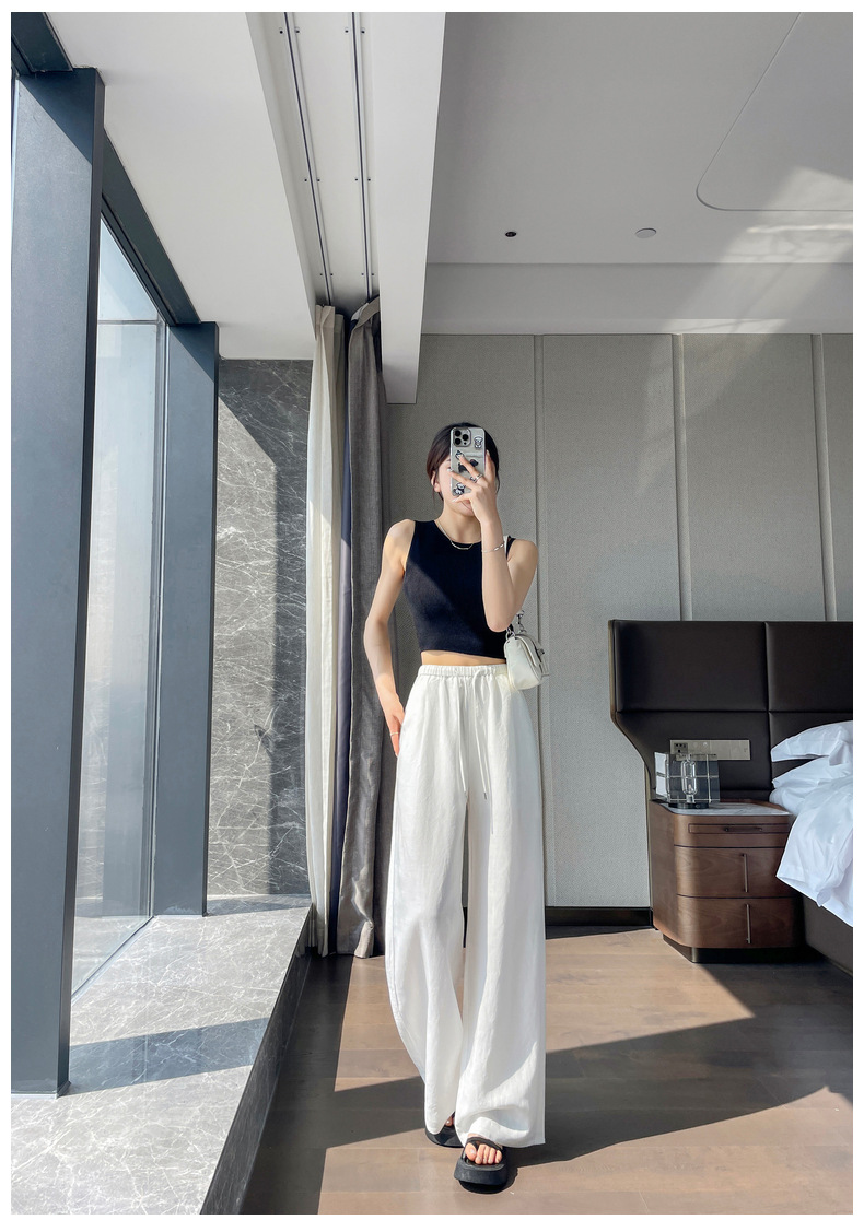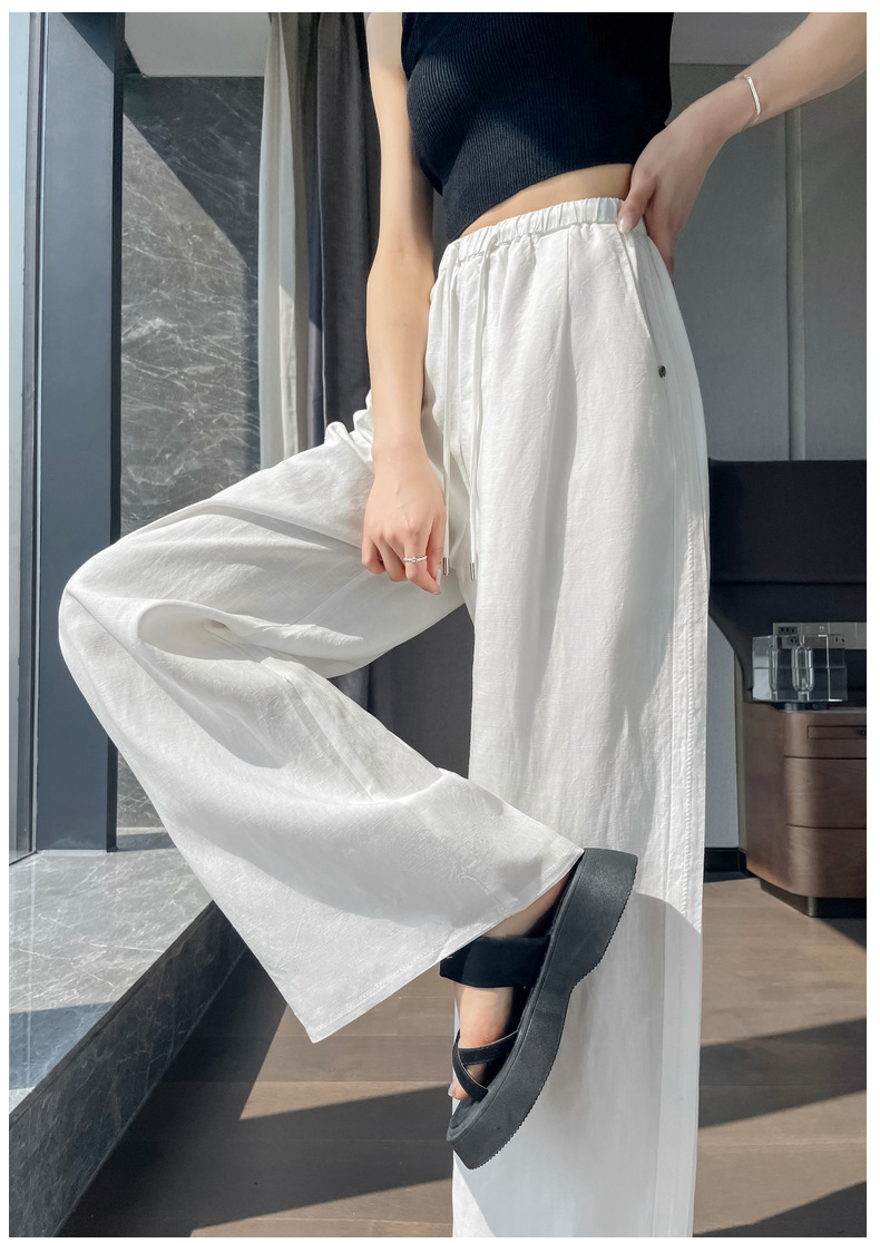 2025 여름 리넨 와이드 레그 바지 여성용 간단한 얇은 Guoxie 게으른 우아한 캐주얼 덤프 야마모토 바지스토어 가기