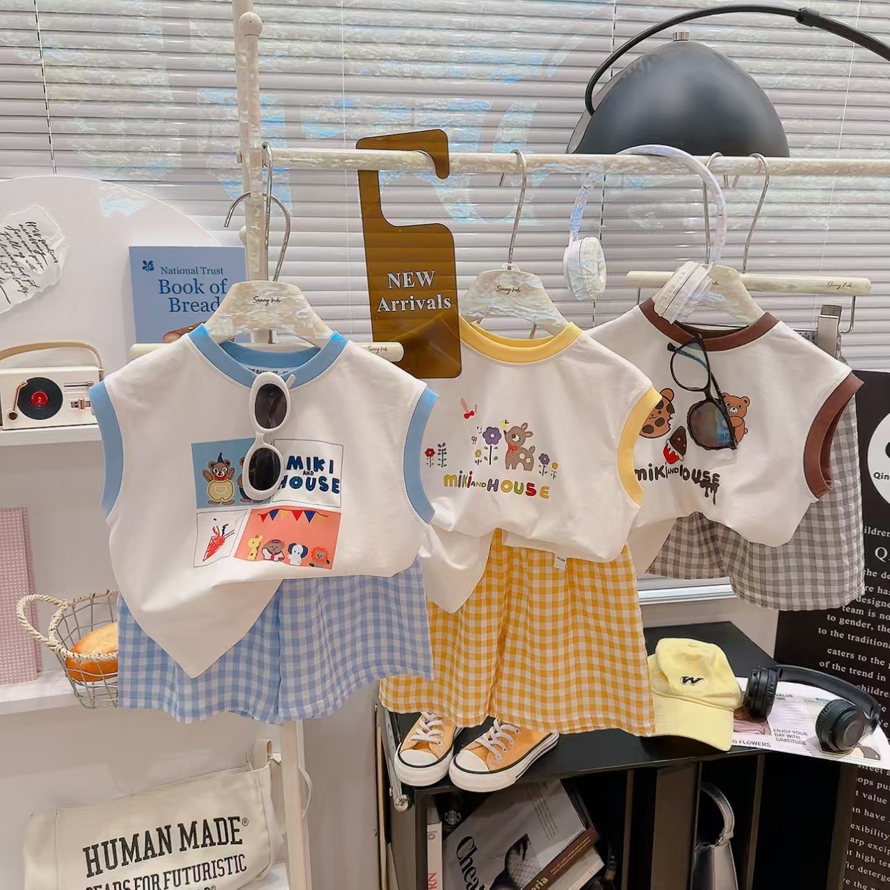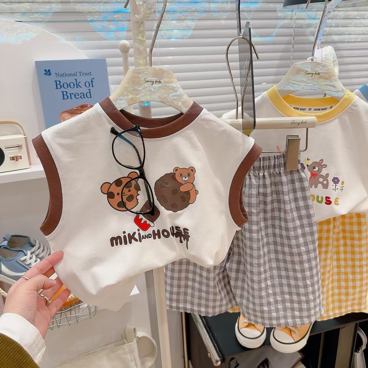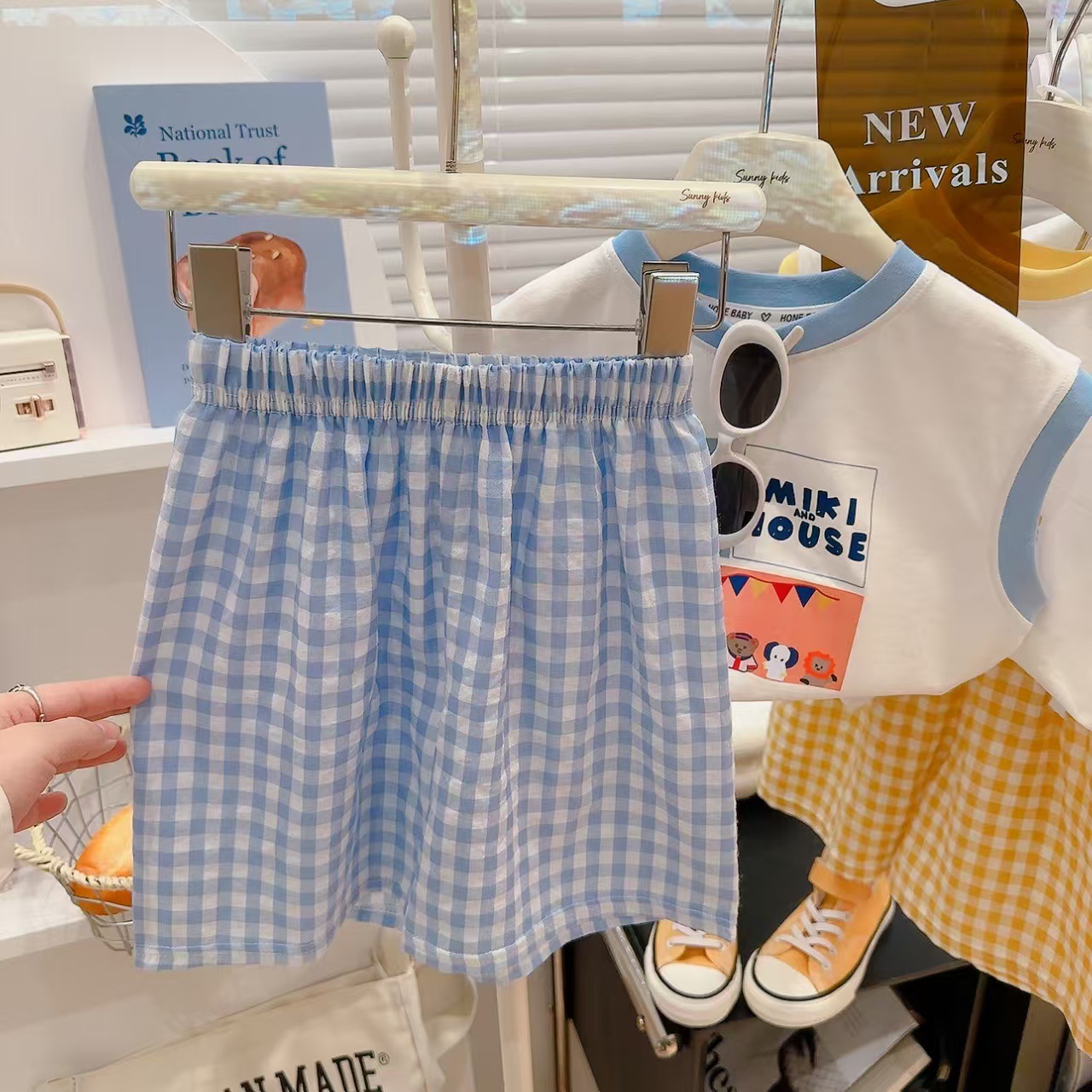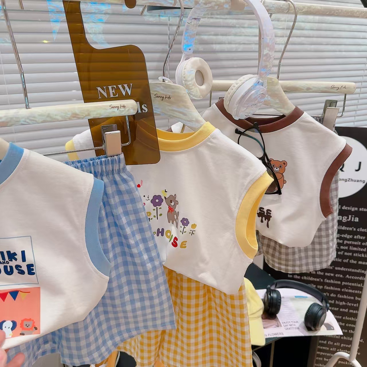 여름 신상 만능 그래피티 조끼 체크무늬 티셔츠 반바지 투피스 세트 남아 여아 라이크라 코튼스토어 가기