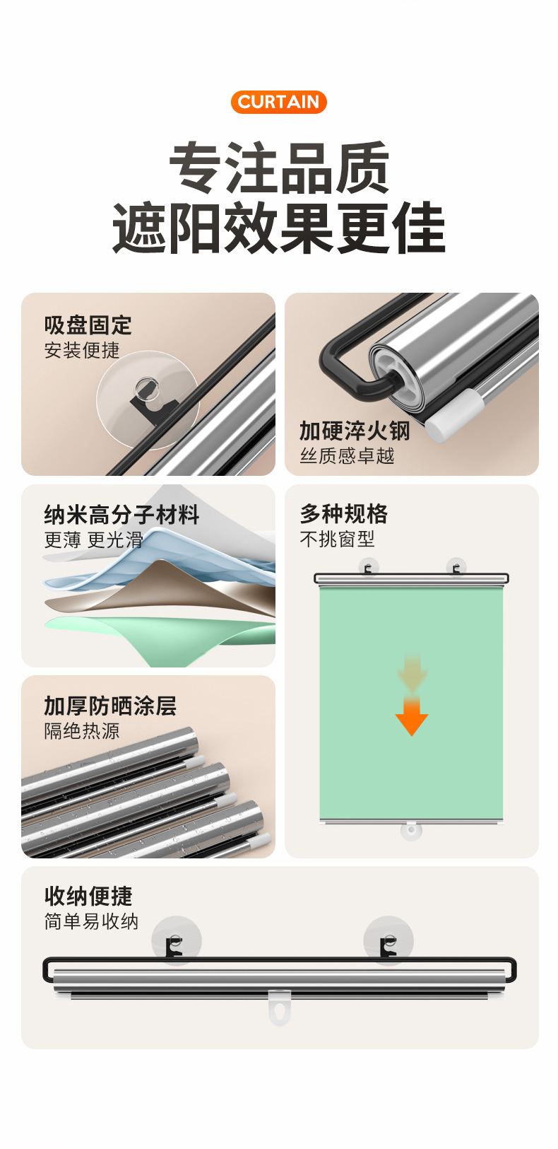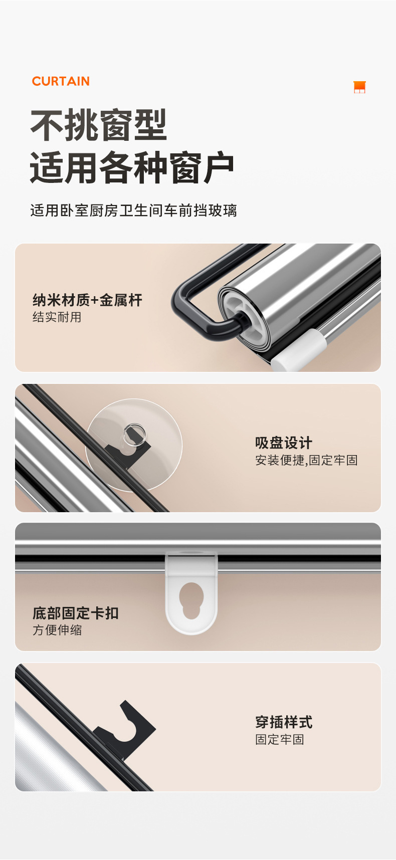 汽车遮阳帘隔热膜伸缩前挡家用厨房窗户防晒免打孔遮光板阳台卷帘