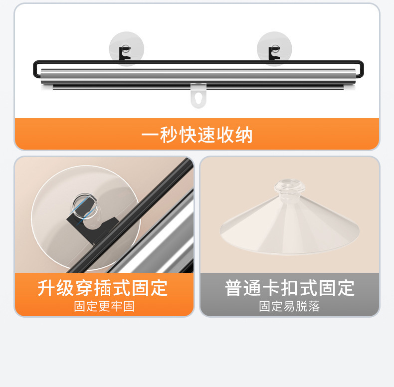工厂直销,可零售批发代发,每套会有3个吸盘,安装之前清洁干净,吸盘可沾水,吸力会增强,如吸盘变形,可开水浸泡3分钟回恢复如初,特别冬季,很实用的小技巧。