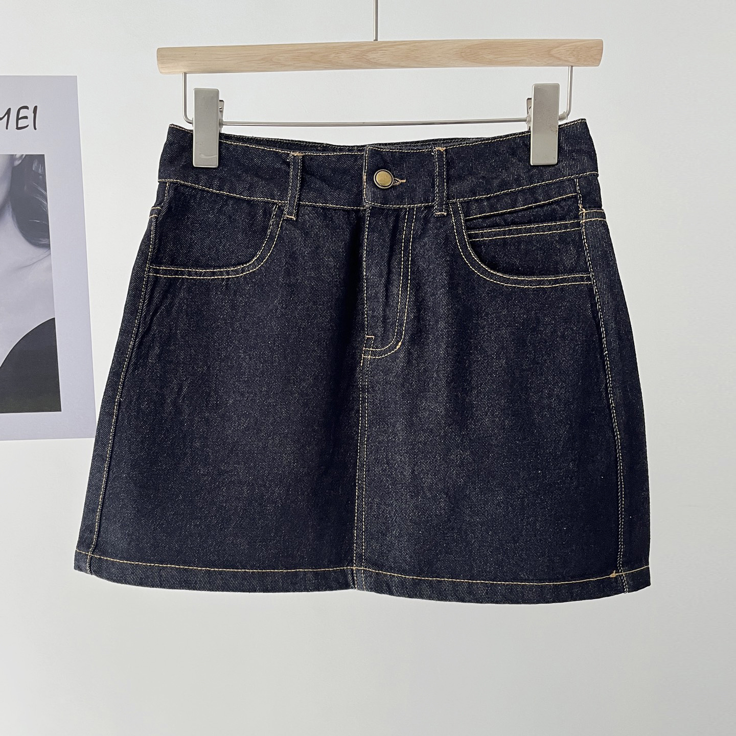 재고 SW 스타일 레트로 콘트라스트 컬러 라인 비대칭 포켓 데님 스커트 여성 여름 새로운 하이 웨이스트 A 라인 스커트스토어 가기