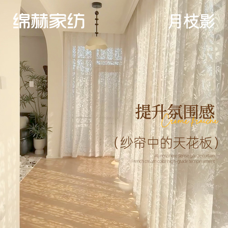 문 브랜치 섀도우 자카드 거즈 커튼 반 쉐이딩 크림 화이트 커튼 창 화면 빈 패브릭 발코니 프렌치 라이트 전송 원사