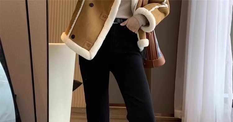2025년 가을 겨울 벨벳 여성용 블랙 스트레이트 청바지 새로운 하이웨이스트 슬리밍 배형 바디 플러스 사이즈 담배 튜브 바지스토어 가기