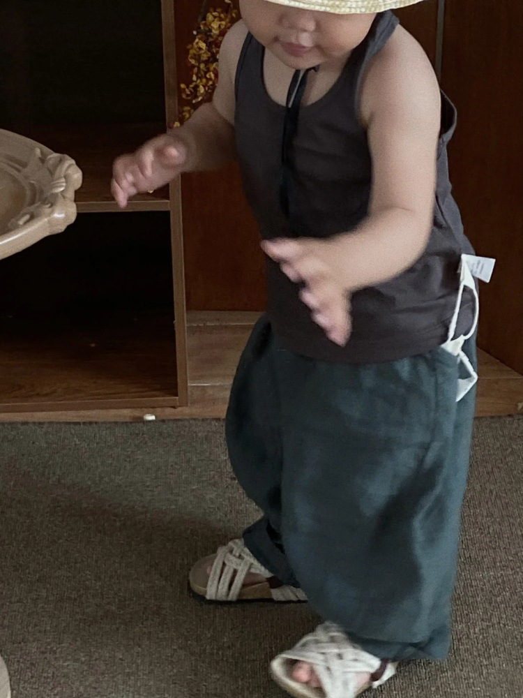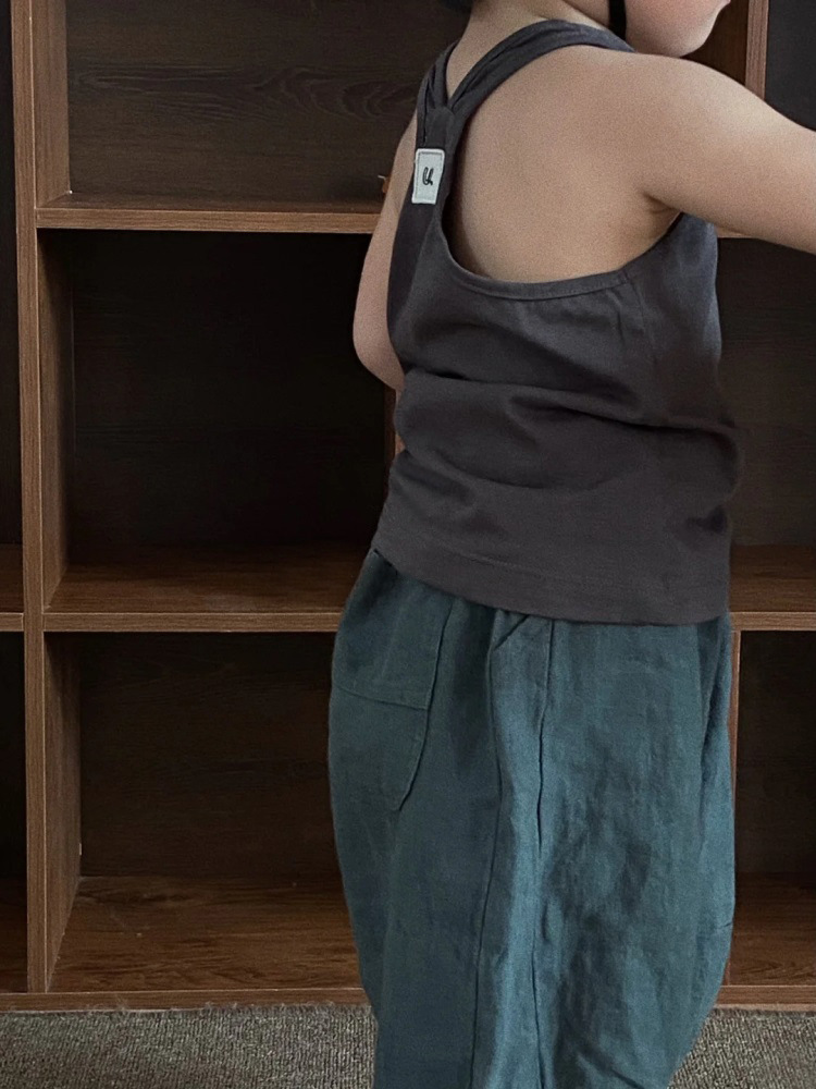 여자 세트 2025 여름 새 소녀 세련된 유행 조끼 바지 두 조각 유행 아이들의 유행 바지스토어 가기