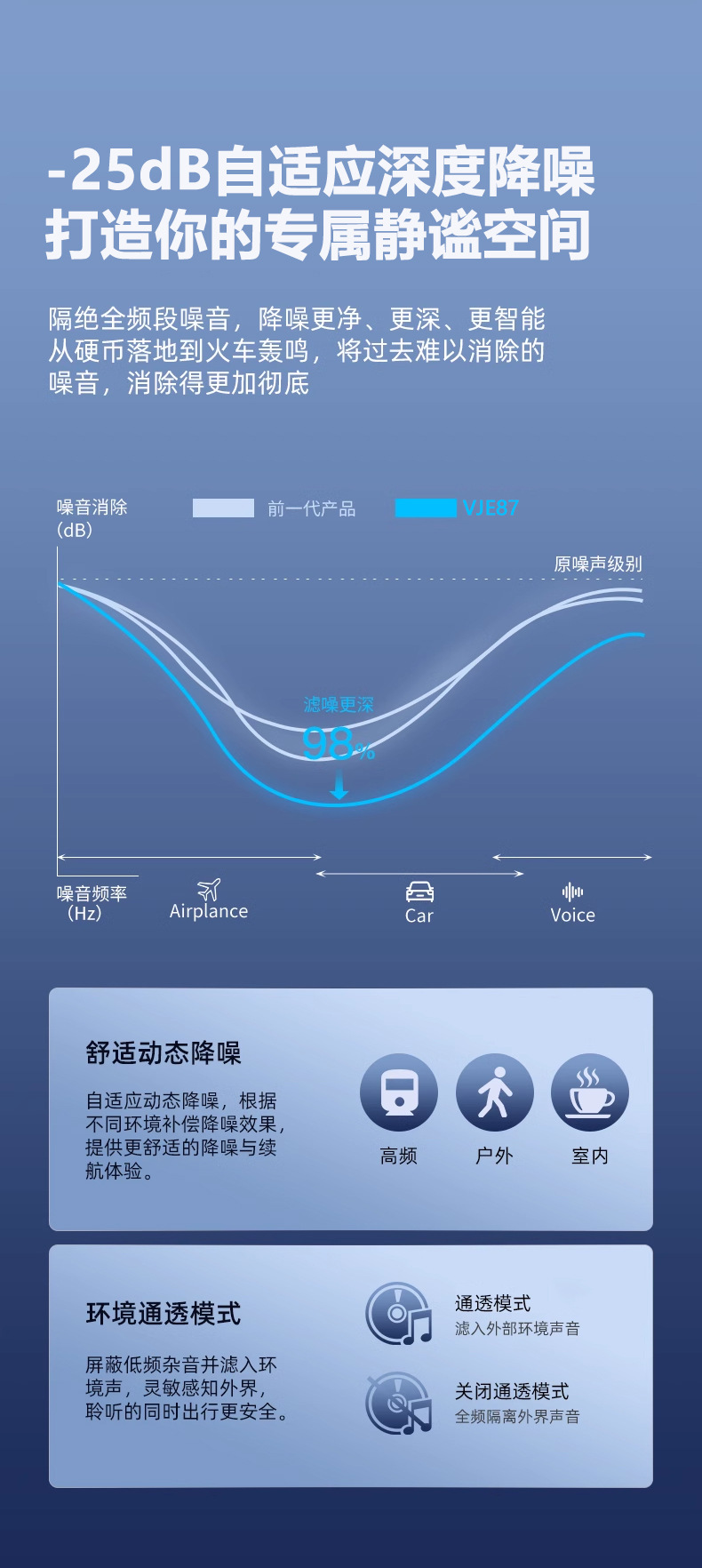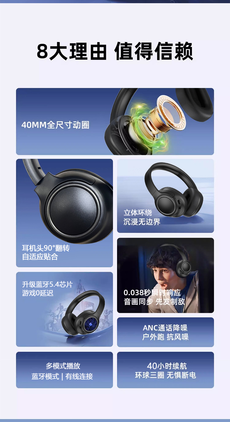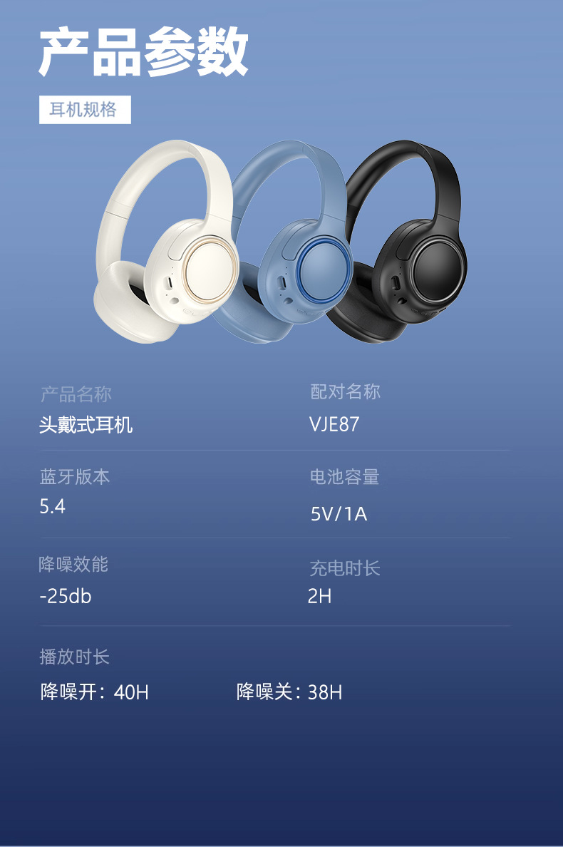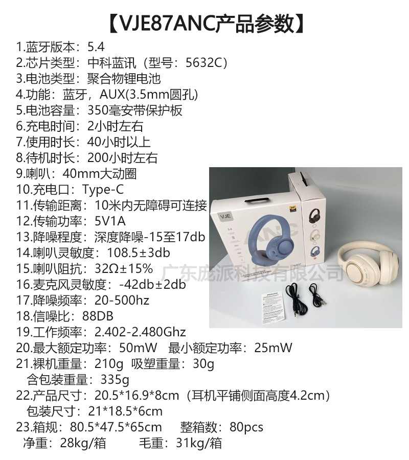 새로운 폭발 VJE87ANC 무선 블루투스 헤드셋 긴 수명 소음 감소 음악 국경 공장 도매스토어 가기