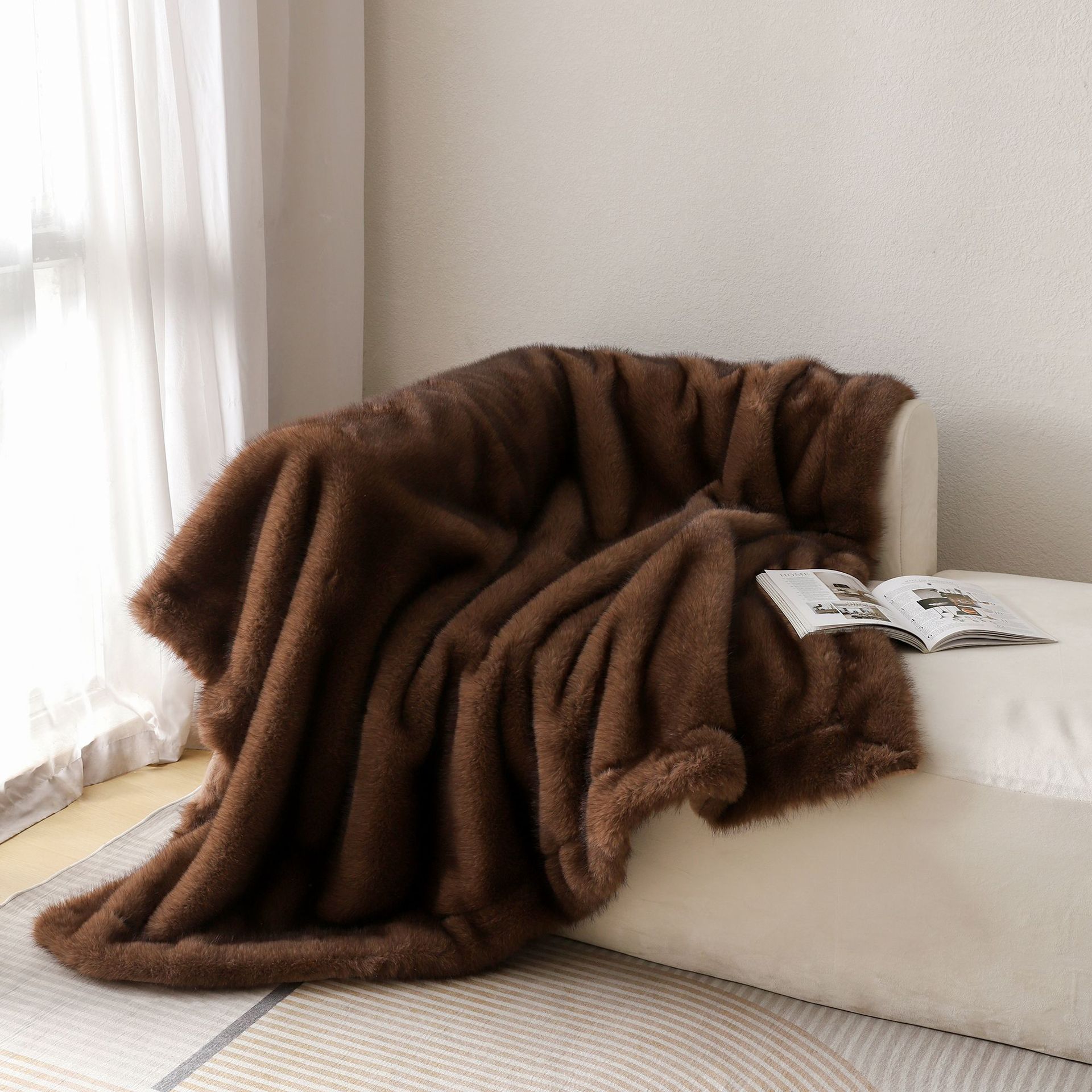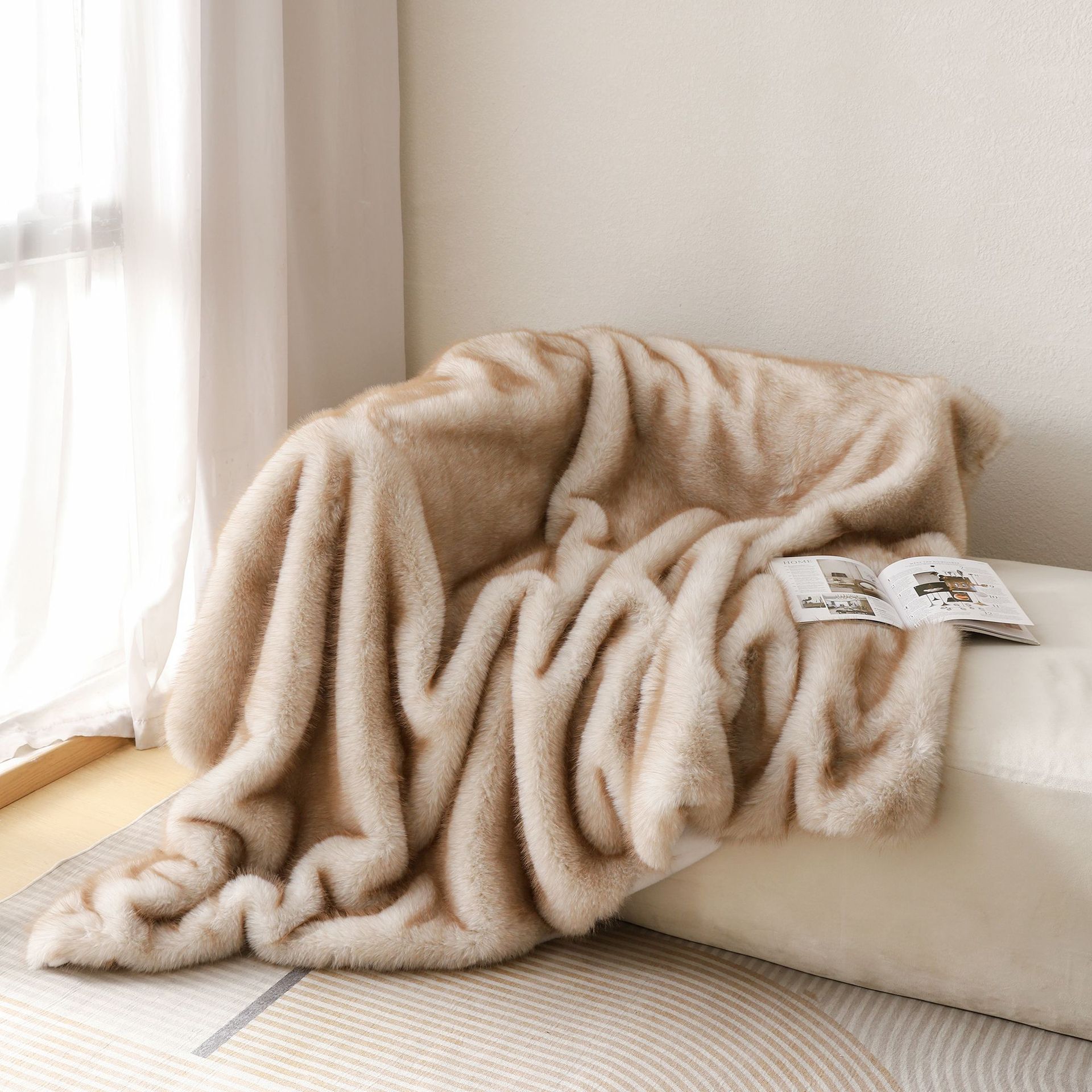 인기 폭발 모조 여우털 담요 고급 두꺼운 따뜻한 소파 담요 모피 토끼털 낮잠 담요