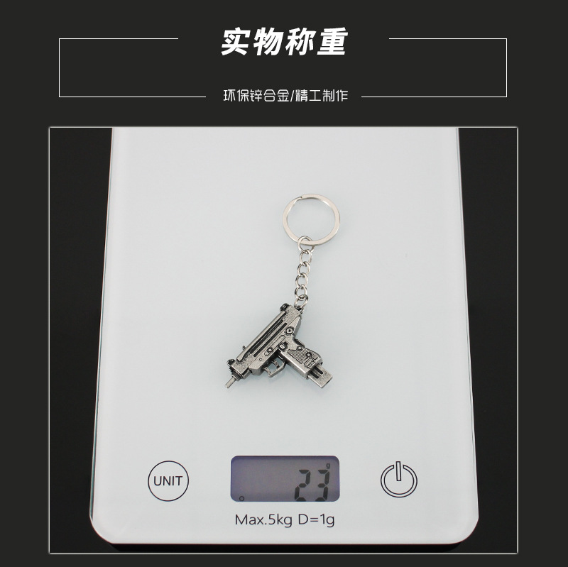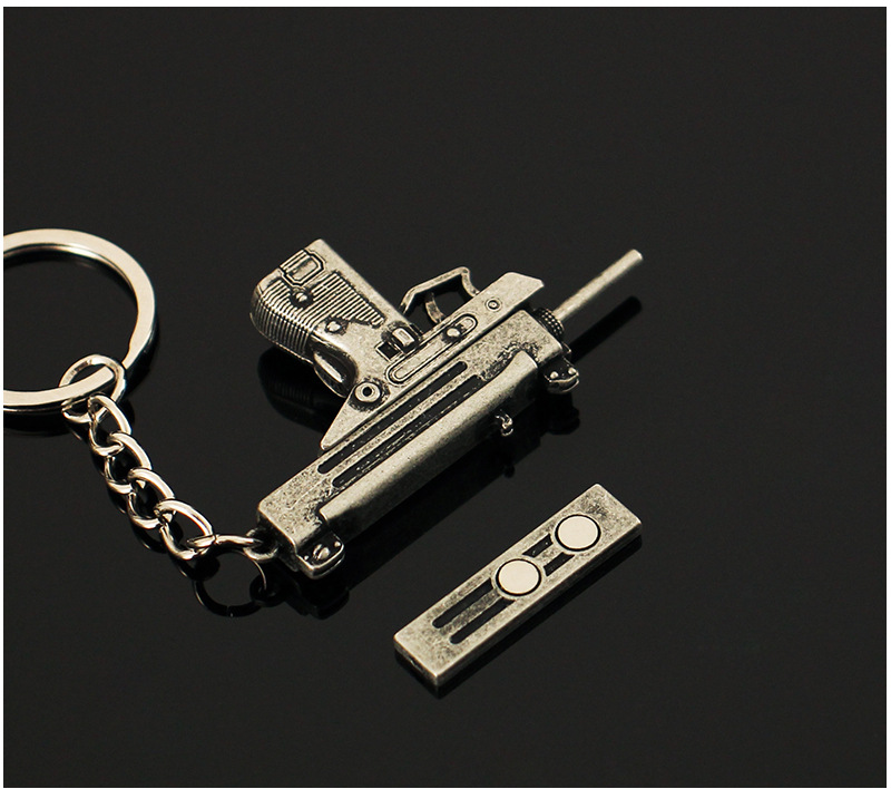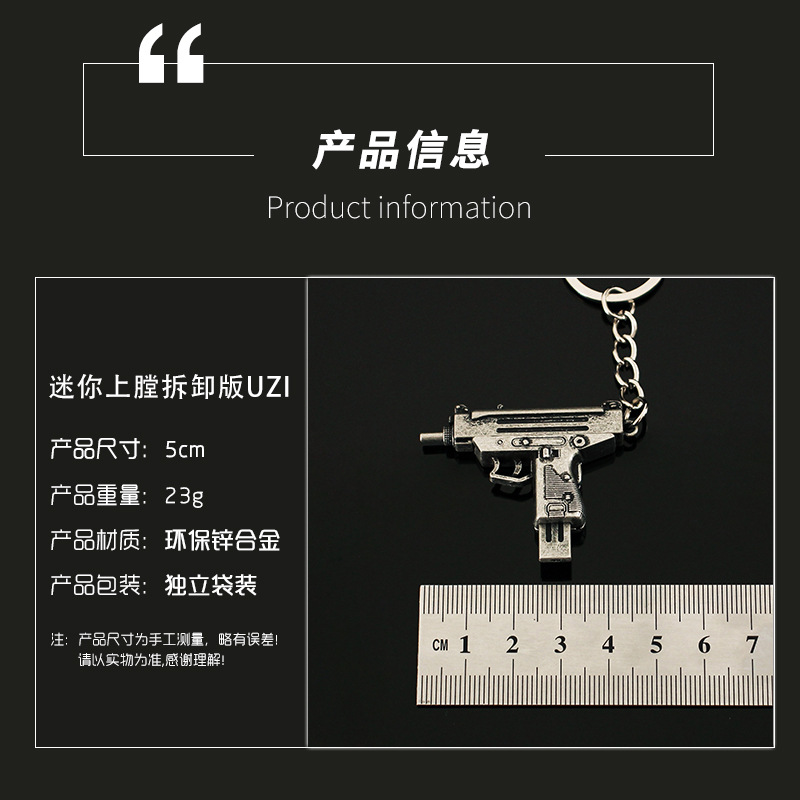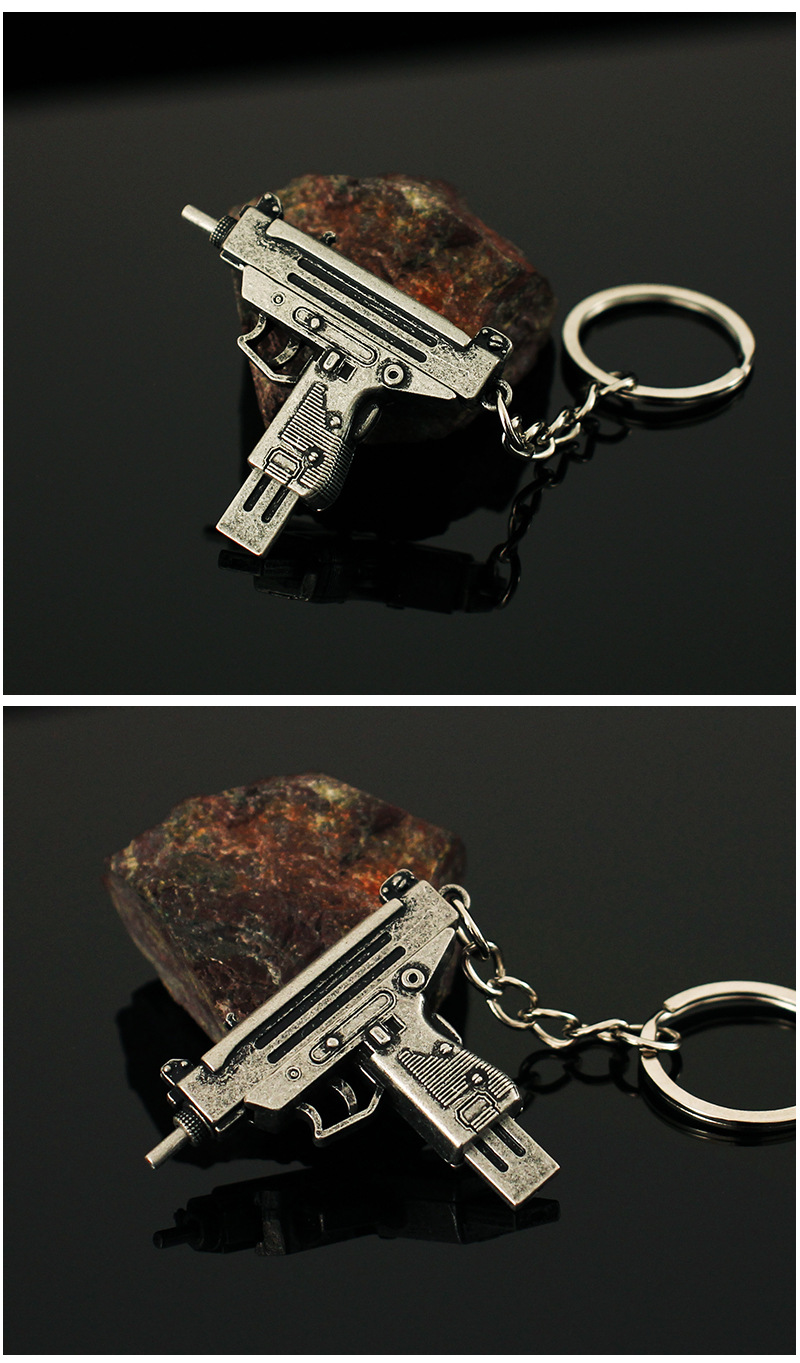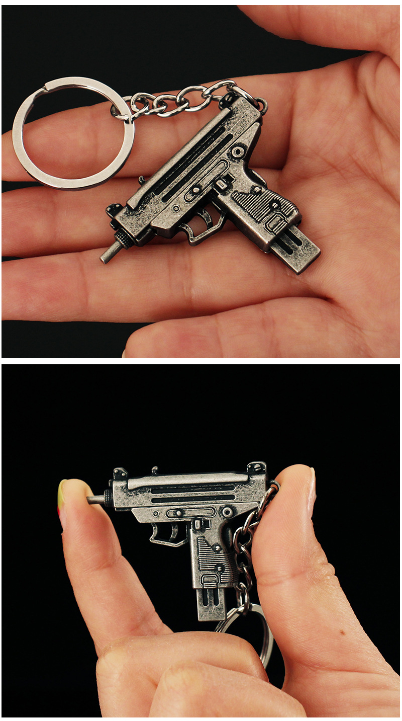 작은 치킨 총 모델 장식품 금속 펜던트 uzi 장난감 분리형 합금 키 체인 장식 5cm
