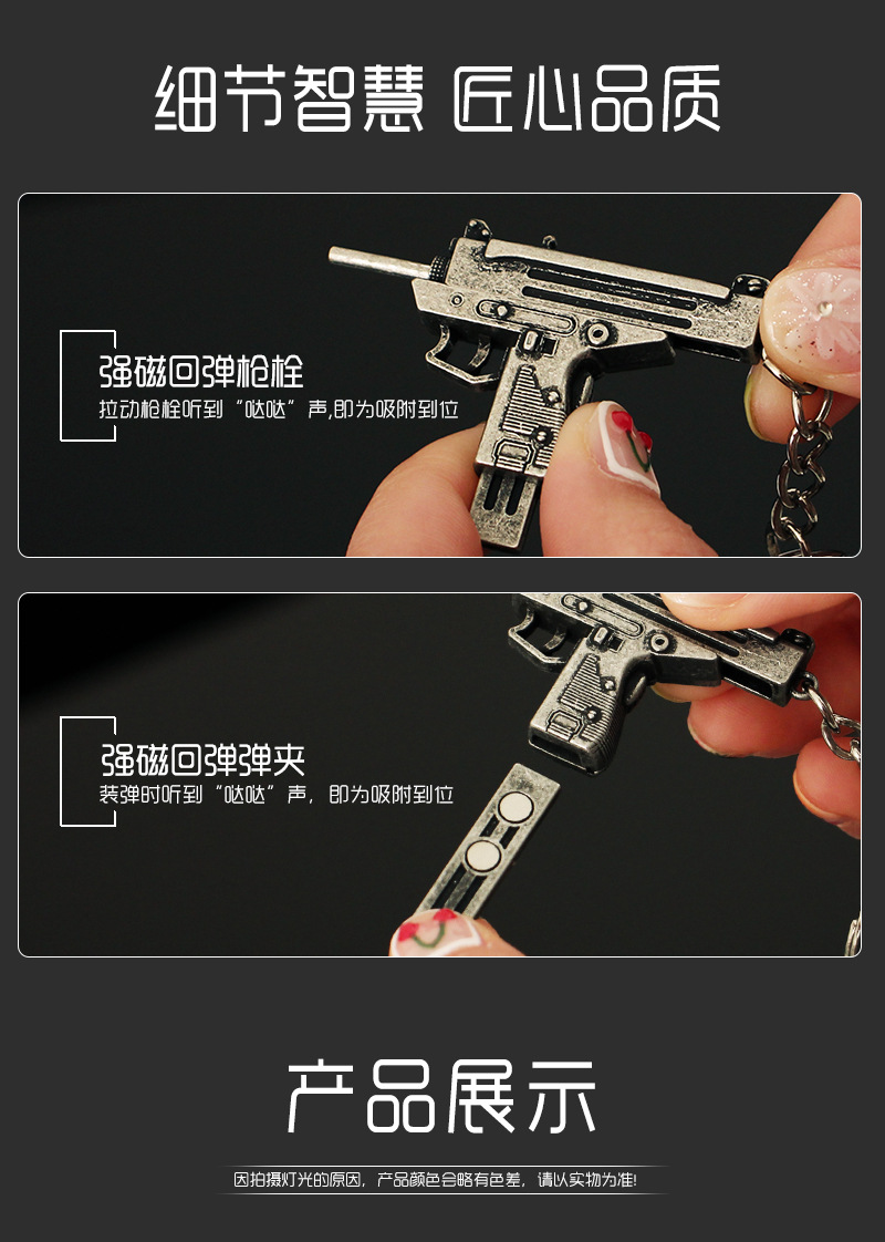 작은 치킨 총 모델 장식품 금속 펜던트 uzi 장난감 분리형 합금 키 체인 장식 5cm스토어 가기