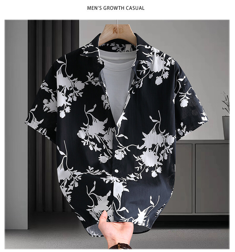 여름 반팔 셔츠 남자의 캐주얼 하와이 스타일 꽃 셔츠 플러스 사이즈 비치 옷 느슨한 얇은 탑스토어 가기